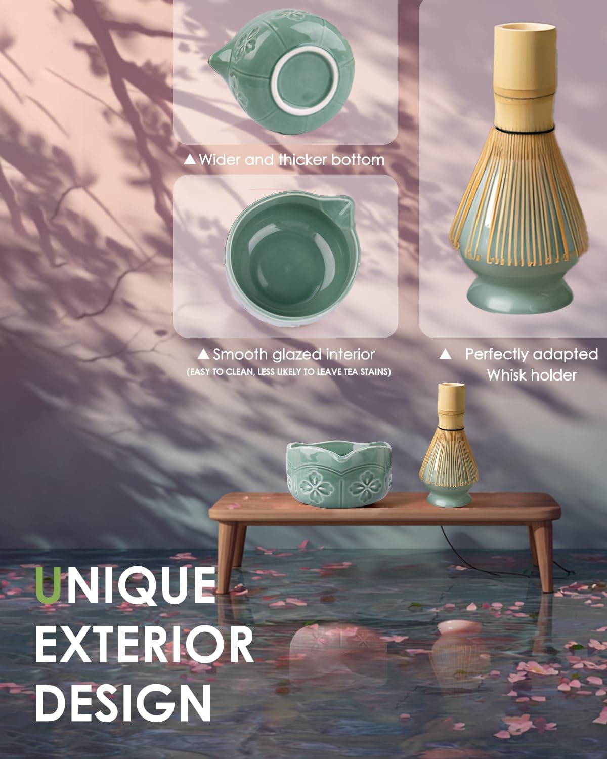 • Design Philosophy:Inspired by Japan’s "Tokyo Cherry Blossom," this matcha bowl showcases a classic four-petal "Lucky Cherry Blossom" motif. Its wave-shaped rim evokes gentle water ripples, blending traditional floral symbolism with minimalist modern style. Honoring the spirit of Japanese tea ceremony, it serves as a timeless work of art for everyday life.