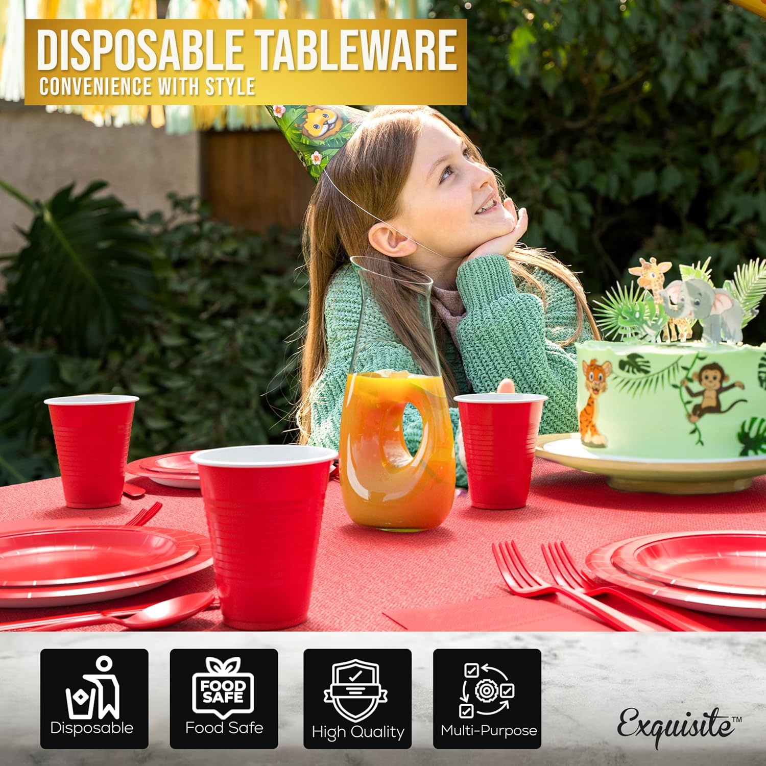 • Easy Cleanup: No dishes to wash! This disposable plates and cups set saves time and stress. With disposable cutlery, red paper plates, and plastic cups, cleanup is quick. Ideal for hosts who want a convenient, no-mess solution with stylish red party supplies.