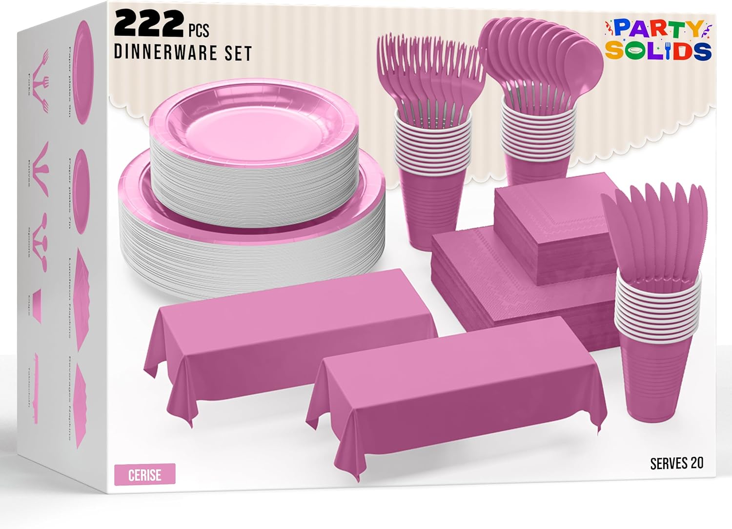 • Durable & Reliable: Designed for strength, this plastic dinnerware set disposable holds up through any event. From hot pink plastic utensils to plastic party plates and cups, every item in this hot pink party plates set is built for durability and easy use at BBQs, birthdays, or picnics.
