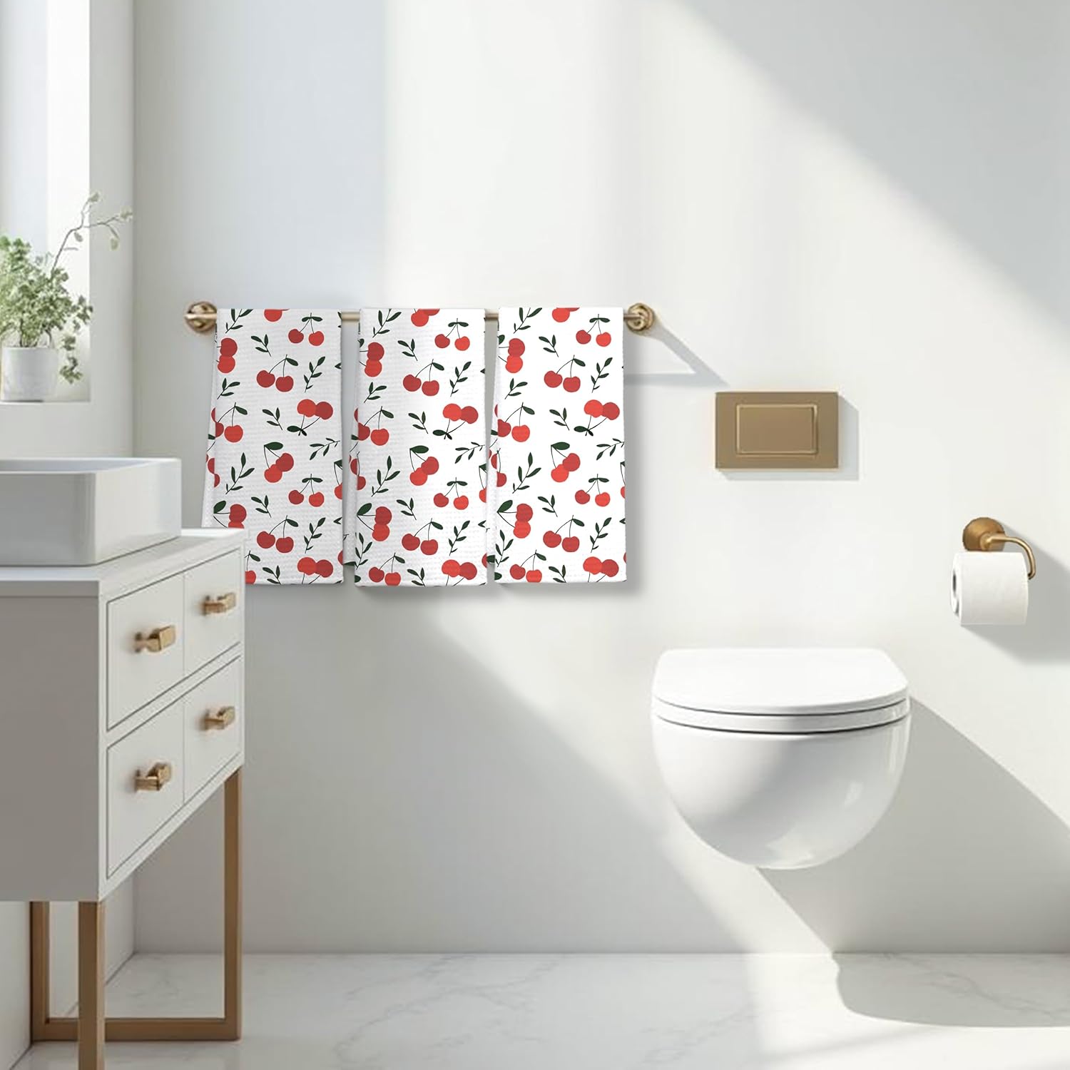 Cherry Decor Kitchen Towels Set of 3, Cherry Hand Towels Dish Towels for Kitchen Bathroom Decor, Fruit Lover Gifts, 16x24 Inches