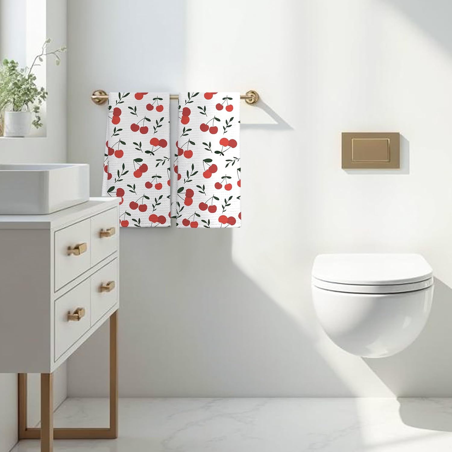 Cherry Decor Kitchen Towels Set of 2, Cherry Hand Towels Dish Towels for Kitchen Bathroom Decor, Fruit Lover Gifts, 16x24 Inches