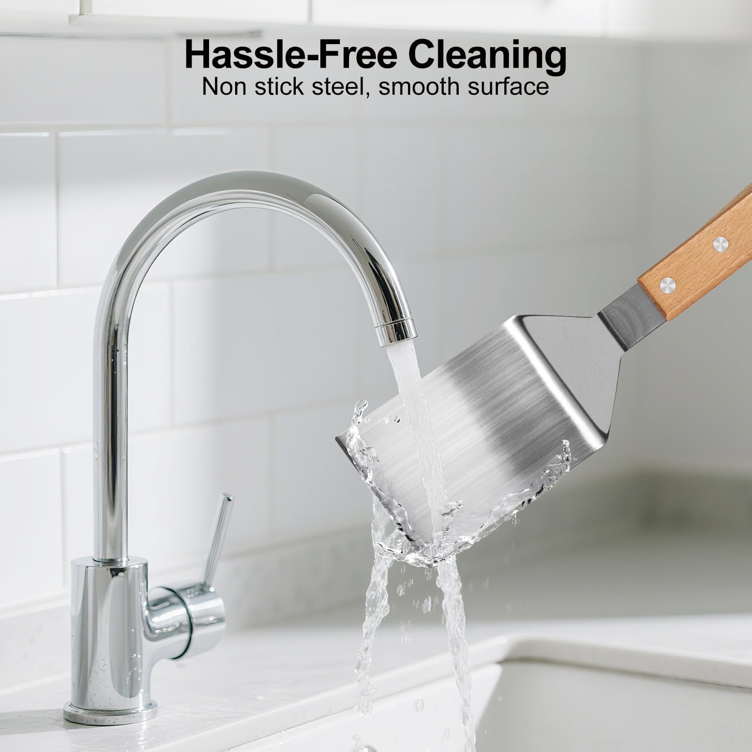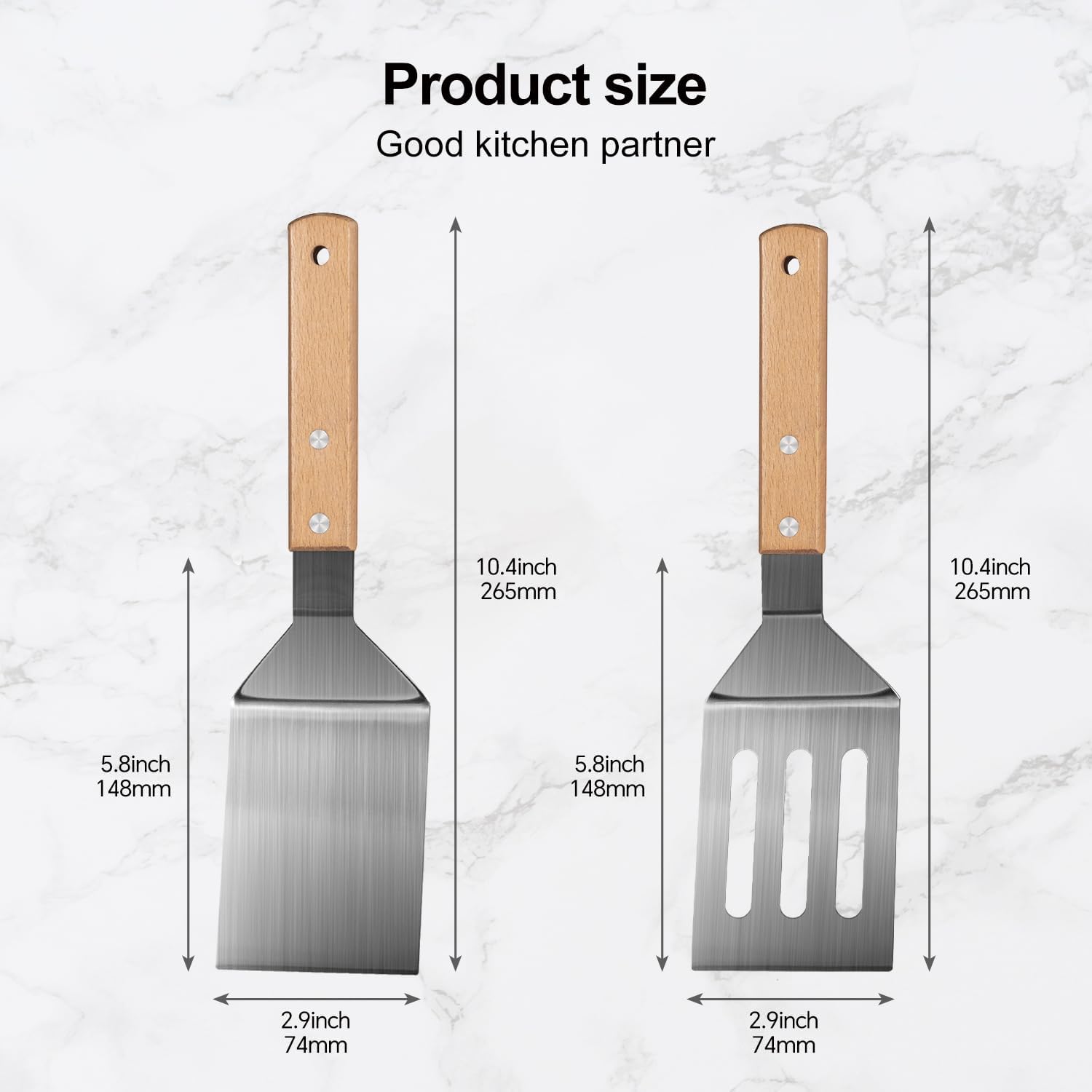 • 【Wide Application Range】 The Metal spatula for cast iron skillet can efficiently handle hamburgers, steaks, eggs, and more,Suitable for various cooking scenarios such as frying, stir frying, and baking.