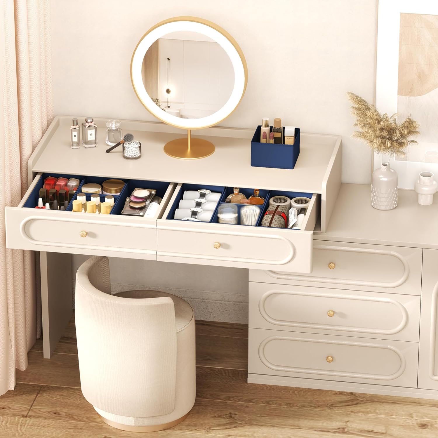 • Flexible Combination: This drawer organizer bins set includes 9 medium boxes (11.8" x 5.9" x 3.54"), and 9 small square boxes (5.9" x 5.9" x 3.54"), allowing for free combinations of 2 sizes for efficient and personalized organization