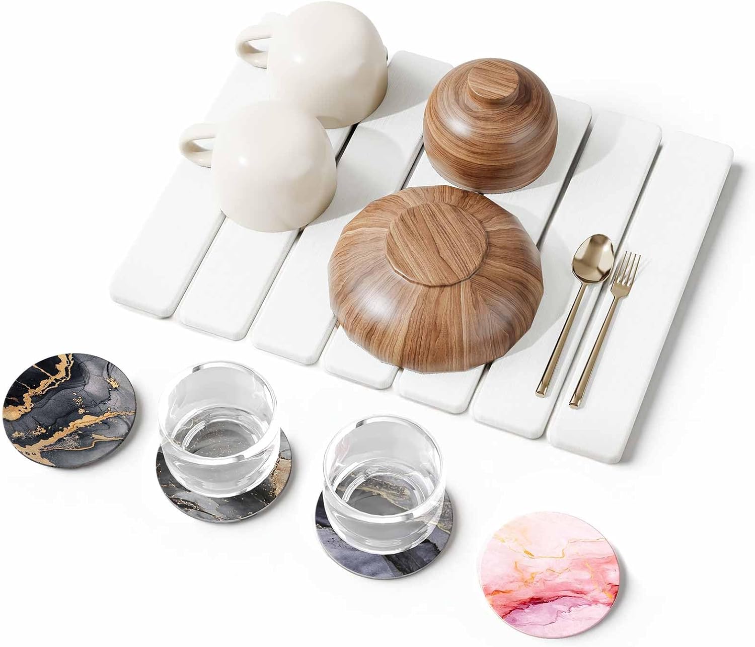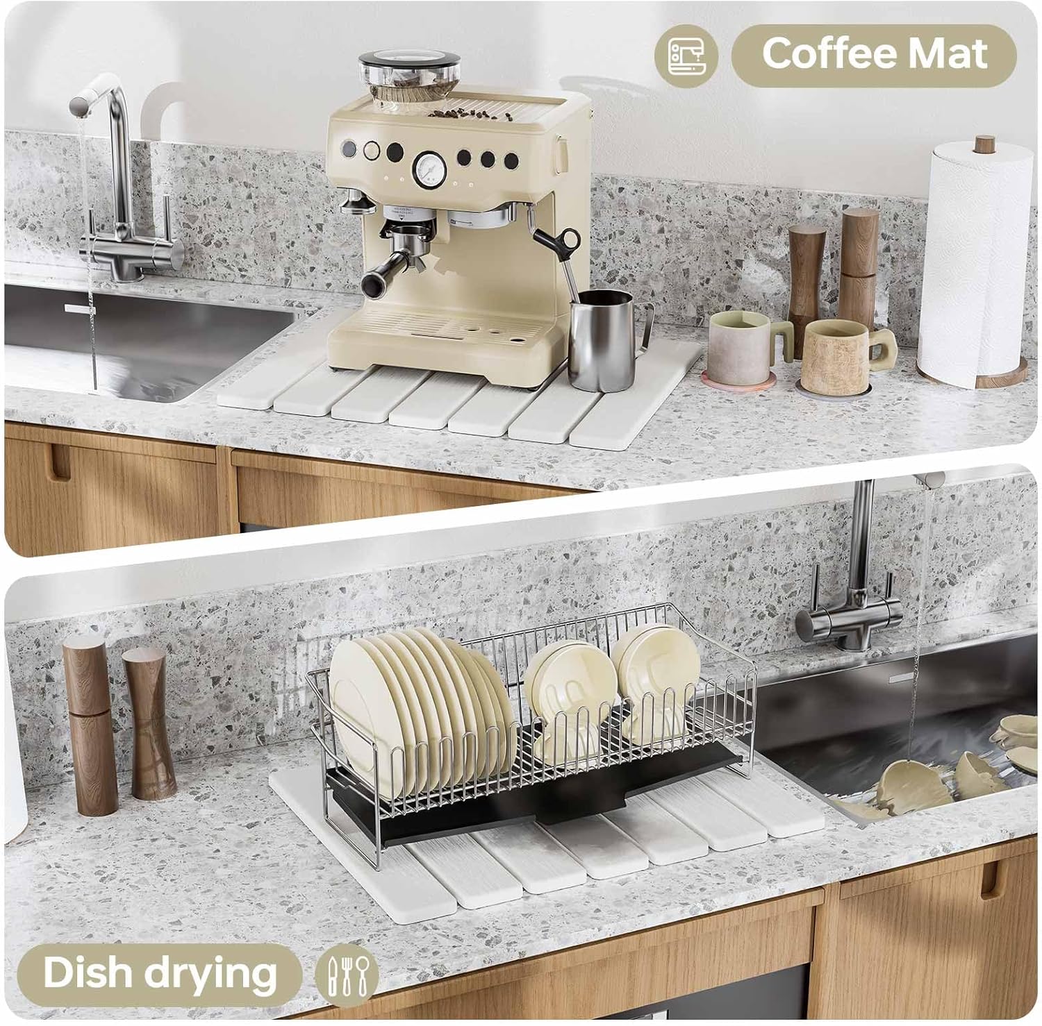 • 【Modern Aesthetics Design】With iminimalist aesthetic, these stone drying mats fits most kitchen & Bathroom decor styles, adding a touch of modern elegance to your home!