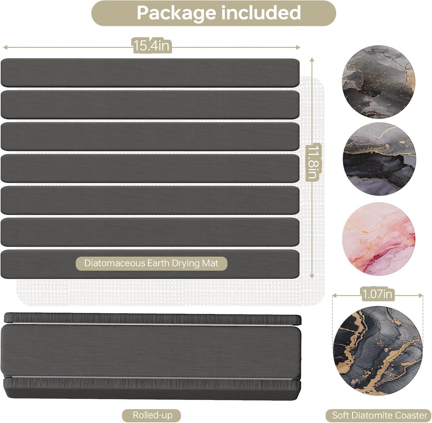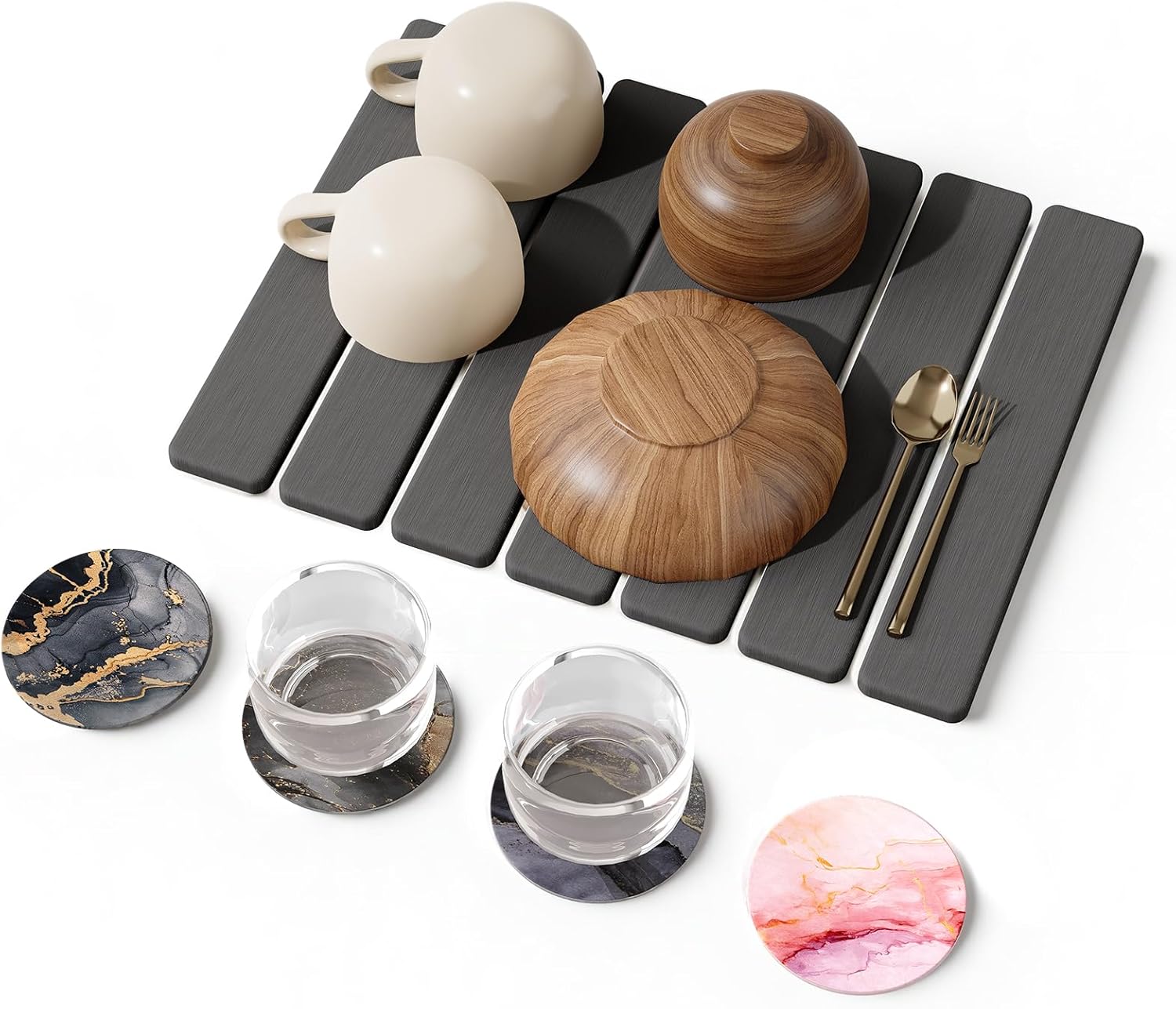 • 【Modern Aesthetics Design】With iminimalist aesthetic, these stone drying mats fits most kitchen & Bathroom decor styles, adding a touch of modern elegance to your home!