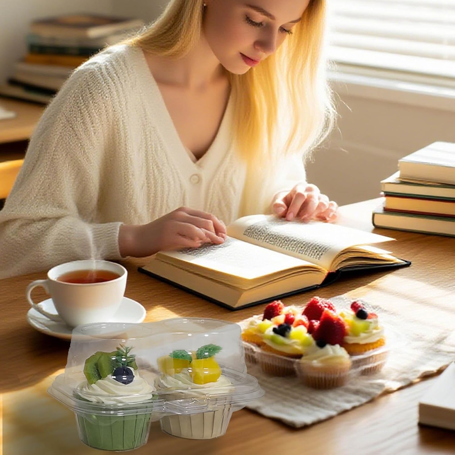 • The Disposable Plastic Cupcake Container With A Lid In 2 Compartments is Stackable, Convenient For Storage And Carrying. Suitable For Displaying in Large Quantities On Tables or Shelves, Customers Will Be Satisfied With These Tempting Cupcakes. Suitable For Any Occasion, Including Bakeries, Snack Stalls, Baking,Sales.