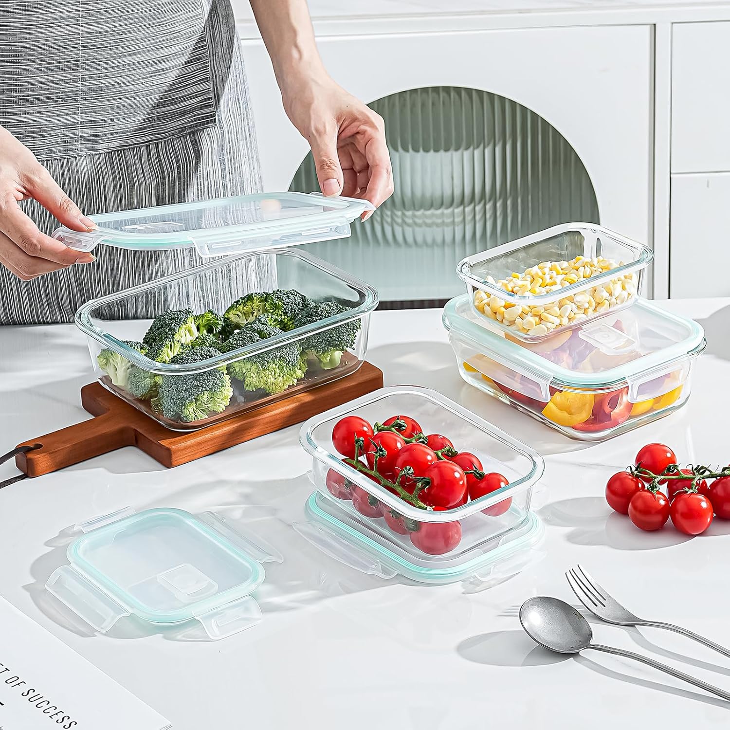 • VERSATILE SET:Capacity 42ounces+35ounces+21.6ounces+12.5ounces. Complete 4-piece glass food storage container set with secure locking lids for storing leftovers, meal prep, and pantry organization