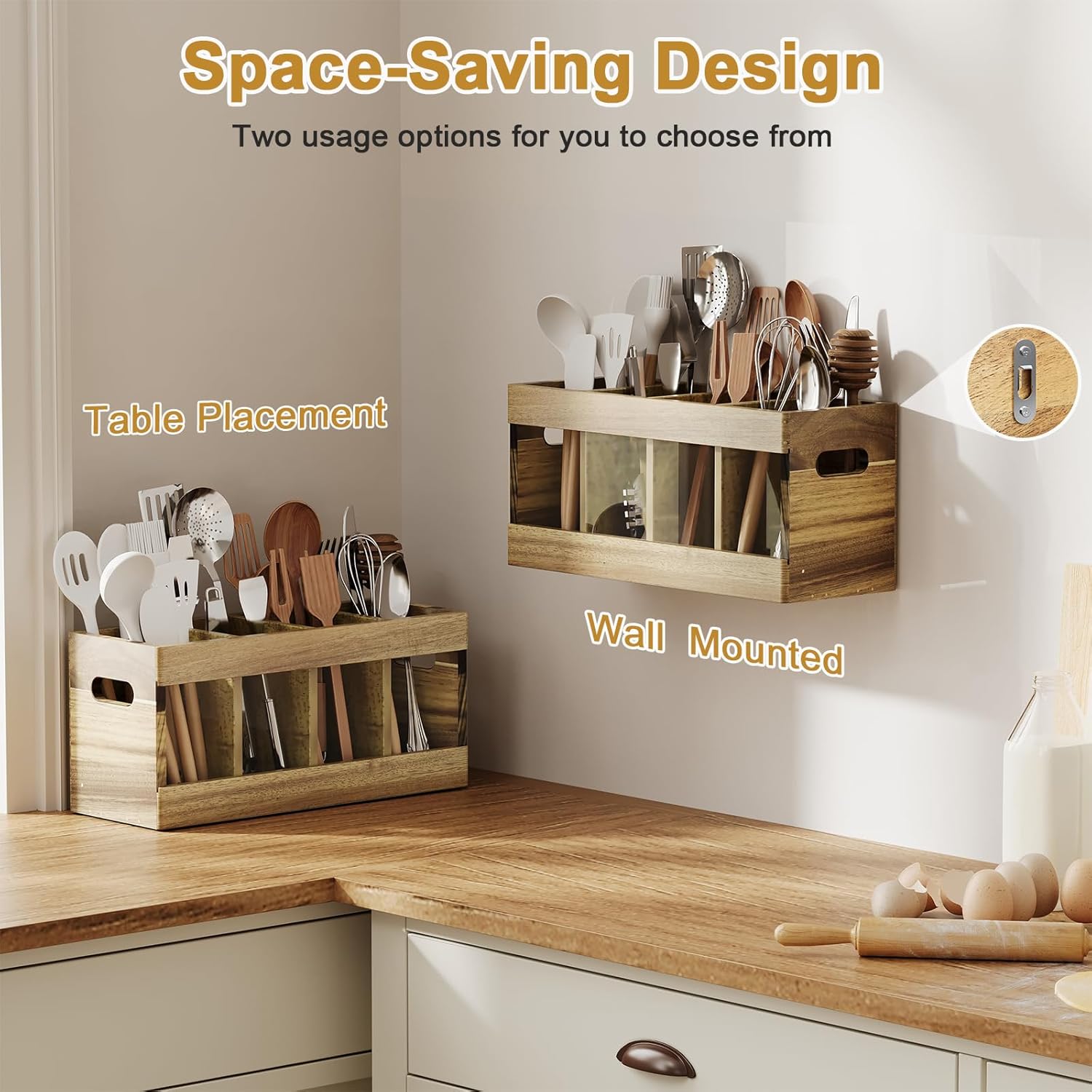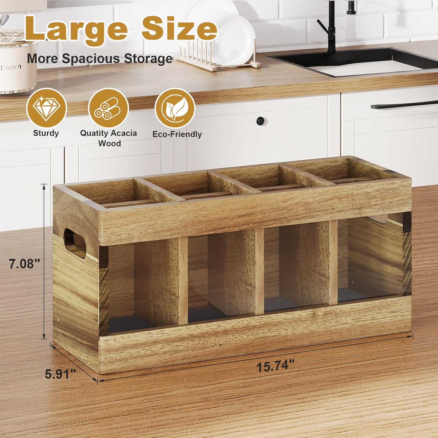 • · Stable, Easy to Clean & Perfect Size – Measuring 15.74" x 5.91" x 7.08", this utensil holder is sturdy and easy to maintain. Removable partitions and smooth varnish finish make cleaning effortless while keeping your kitchen organized.