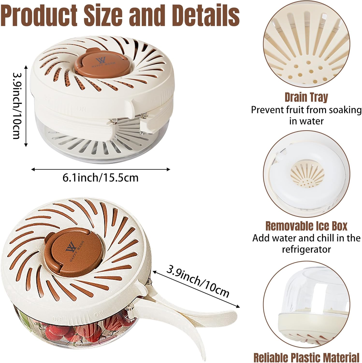 • Compact and Space-Saving – Our fruit washer drain basket measures approximately 6.1 x 3.9 inches, its compact size making it easy to store in the kitchen, fridge, or use during picnics, serving as a versatile storage and cleaning tool.
