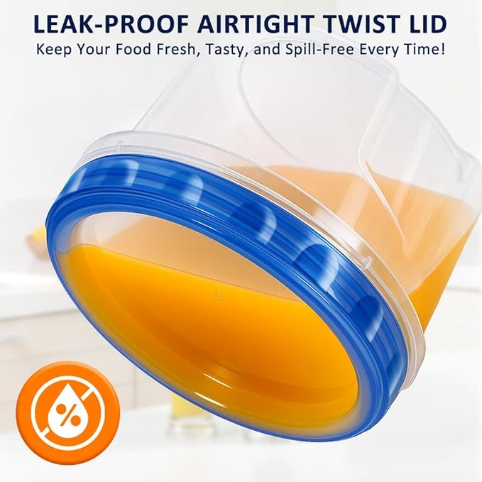 • Airtight Twist-Top Lids: Designed with leakproof screw-top lids, these round plastic freezer containers lock in freshness, making them ideal soup freezer containers or storage for sauces and overnight oats