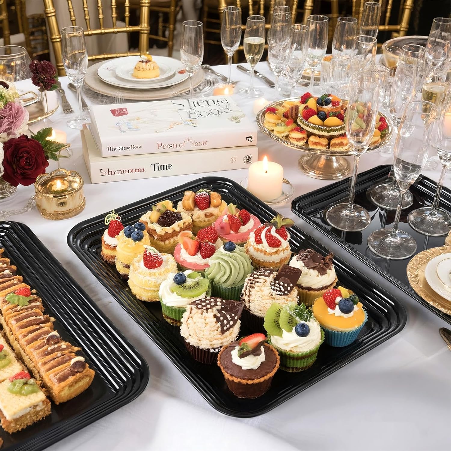 • 【Reusable Plastic Trays】Say goodbye to single-use disposable trays! Our black plastic serving trays are reusable, After each event, simply wash and store them for future use, making them a sustainable choice for any host.