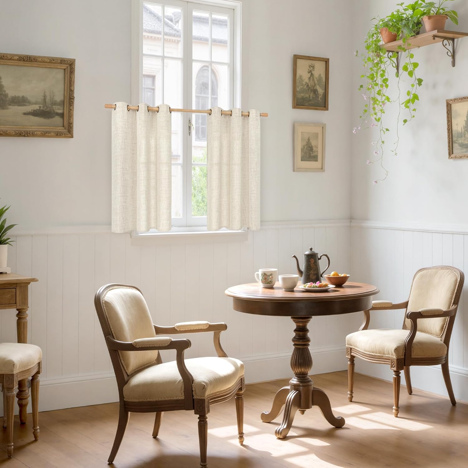 YoungsTex Linen Cafe Curtains 36 Inch Length 2 Panels, Short Half Window Drapes Light Filtering with Bronze Grommet Privacy for Bathroom Kitchen Window Decorative, 34 x 36 Inch