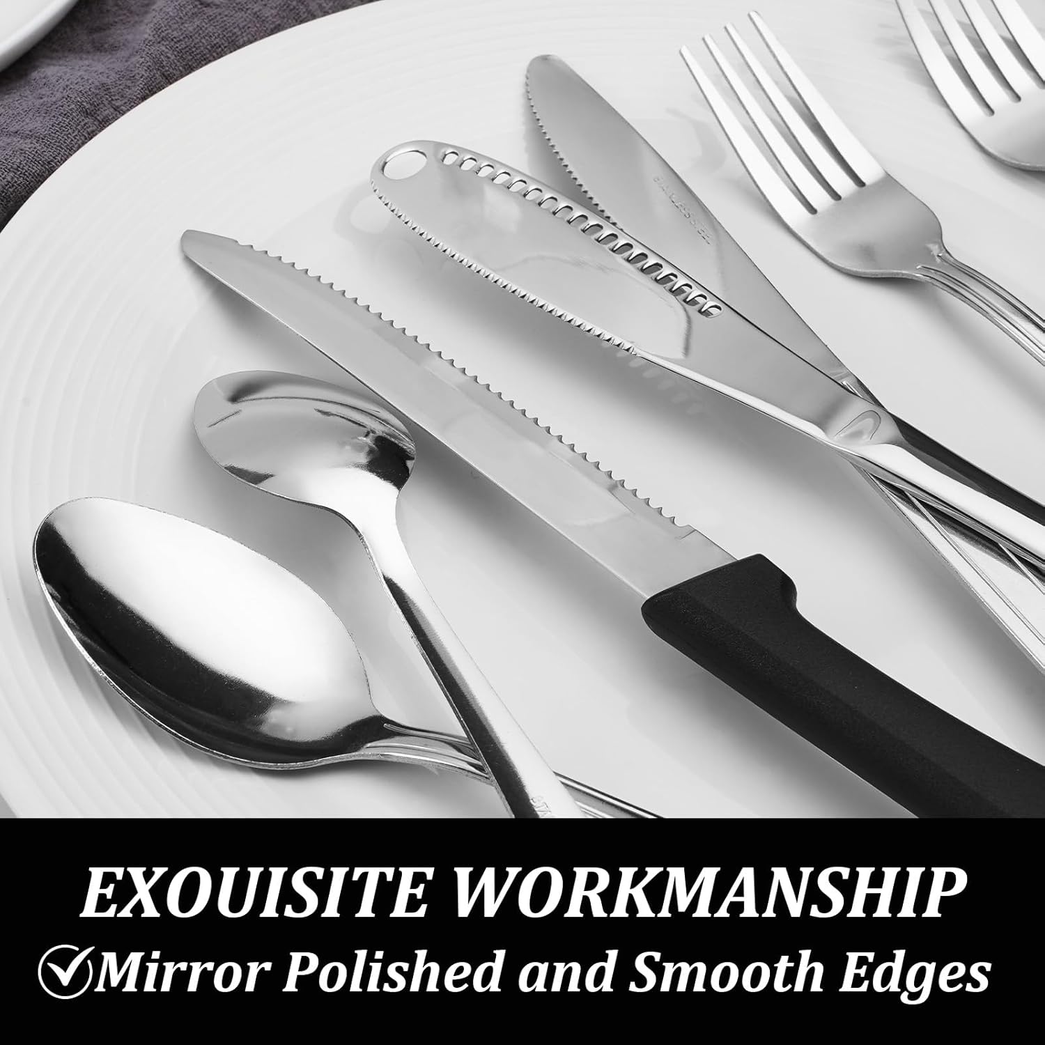 • [High-Quality Stainless Steel]: Crafted from premium, rust-resistant stainless steel, this flatware set is built to last, offering a polished finish that resists tarnishing and corrosion and designed to last for years.