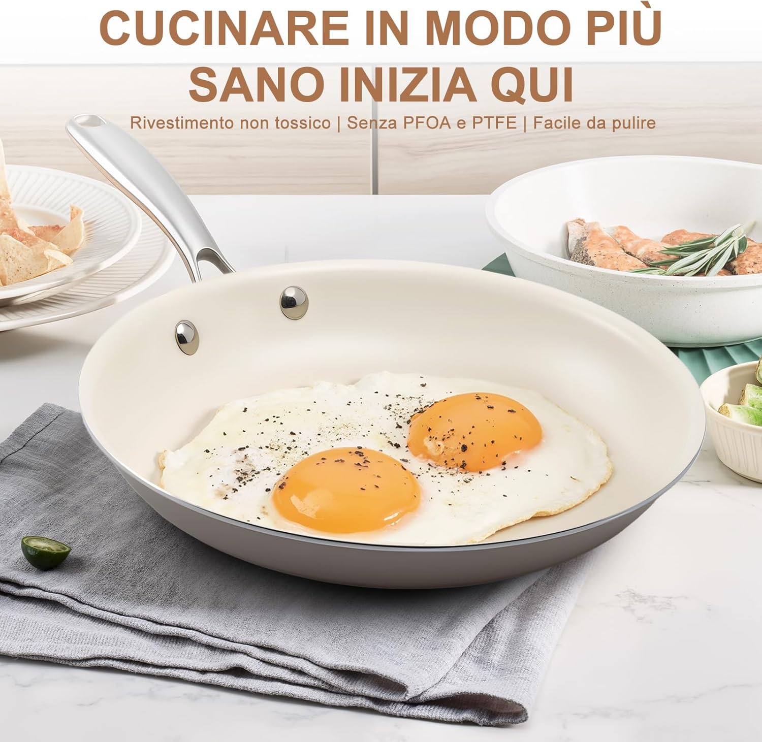 • 【HEALTHY CERAMIC NONSTICK COOKING】 - Enjoy peace of mind with our non-toxic ceramic frying pan coating, free of PFAS, PFOA, PTFE, PFOS, lead, and cadmium. Ideal for healthy cooking, it resists flaking even if overheated, making it a safer choice for families.