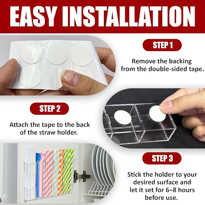 Acrylic Straw Holder for Cabinet Door or Countertop - Clear Organizer & Dispenser for Reusable Tumbler Straws, Space-Saving Kitchen Accessories, Cupboard or Pantry Storage, Strong Adhesive