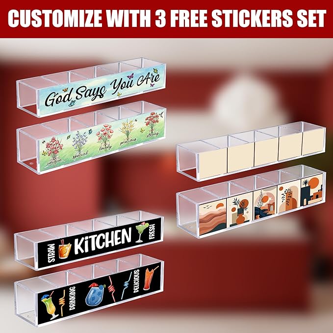 • Includes 3 Decorative Sticker Sets: Personalize your straw holder with functional labels for size, type, or user. Adds both style and organization to your kitchen accessories while making it uniquely yours.