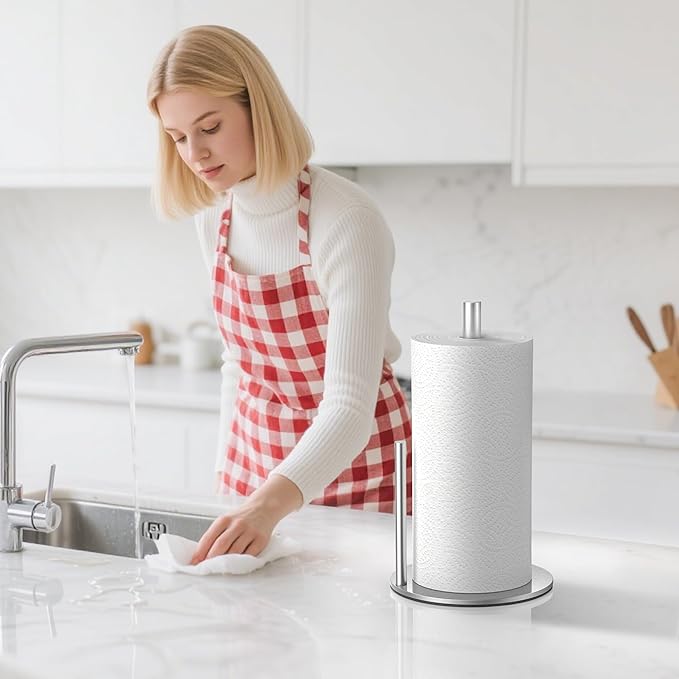 • Stable Base: The paper towel holder has a reinforced base for smooth rotation and easy operation, and a non-slip silicone pad on the bottom preventing scratches on your countertop.
