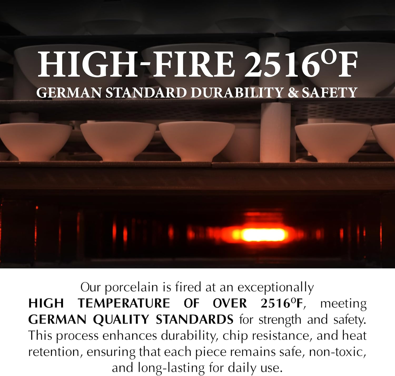 • NON-TOXIC — SAFE FOR HEALTH: While many Ceramic Plates and Bowls Sets may contain harmful chemicals, this 6-piece porcelain dinnerware set is made from rare, refined porcelain and fired at 2516°F—removing impurities and ensuring it's 100% non-toxic. No Lead, Cadmium, PTFE, PFOA, or PFAs—just safe, wholesome meals for your family