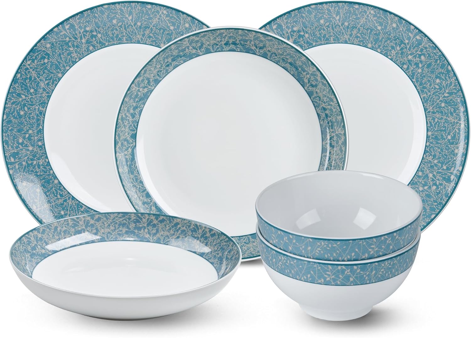 • VERSATILE & NATURE-INSPIRED — While typical Ceramic Dish Sets may look dull or fade over time, this premium porcelain Blue and White Dinnerware stays timeless with a bright and glossy finish. The Blue Leaves design captures the rustic charm of nature with stylized floral and leaf motifs—bringing warmth and elegance to every meal. Built for everyday use, beautiful enough to display, and perfect as a heartfelt gift