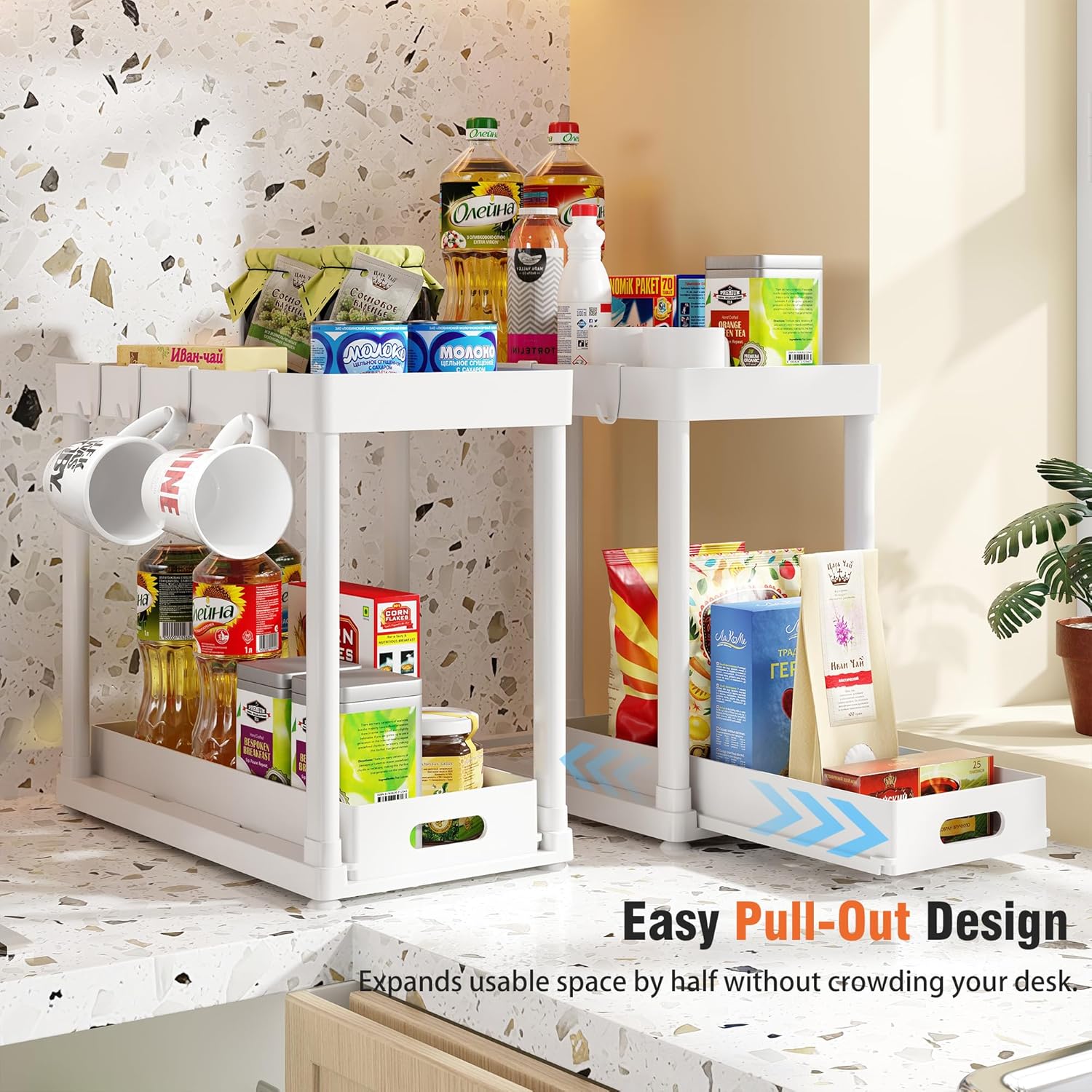 • 【Smooth Pull-Out Cabinet Organizers】Access detergents instantly! Dual-sliding drawers glide smoothly for 1-hand operation – no more bending to hunt under sinks.