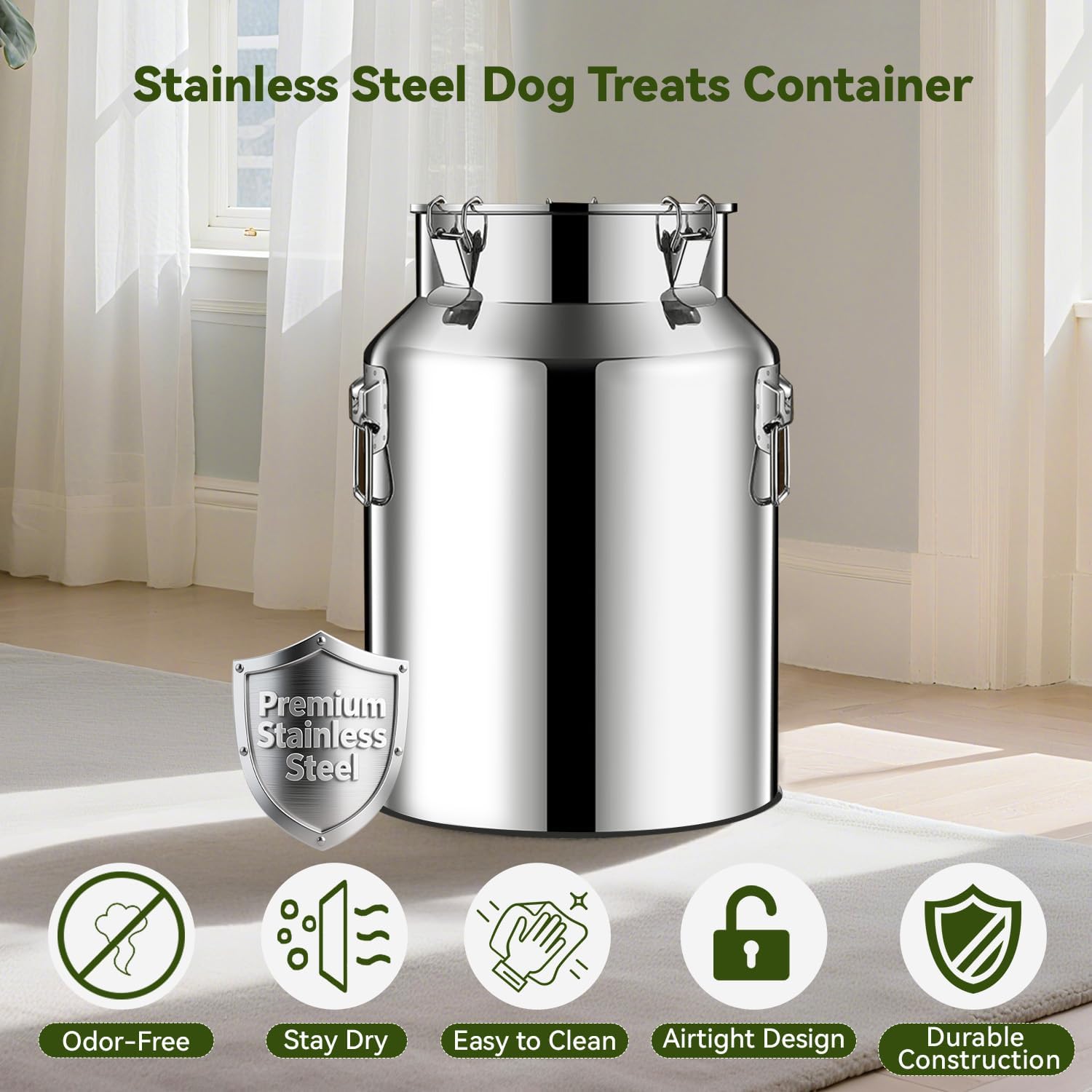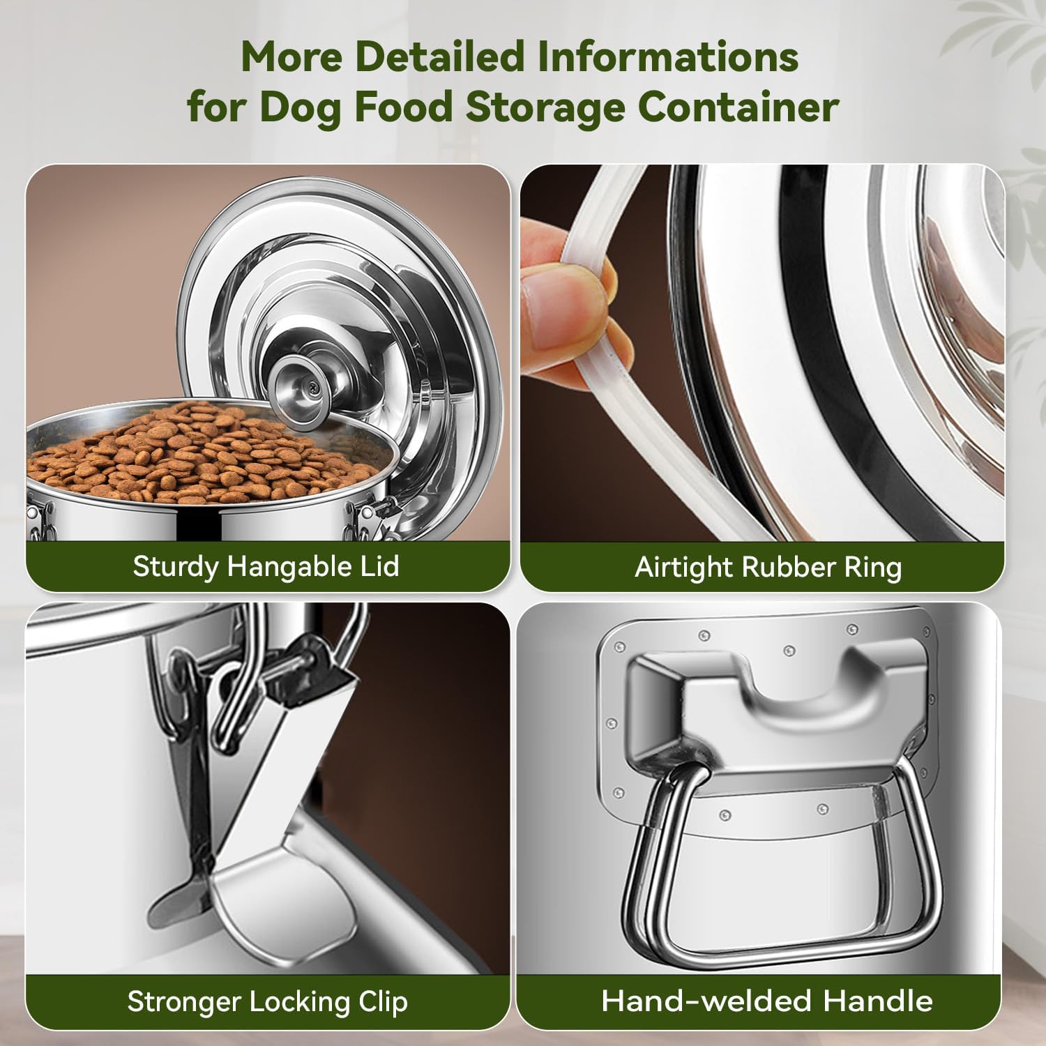 13lb Stainless Steel Dog Food Storage Container, Metal Pet Storage Container with Airtight Hangable Lid to Keep Food Fresh, Large Cat Food Storage Container with Scoop to Easily Clean