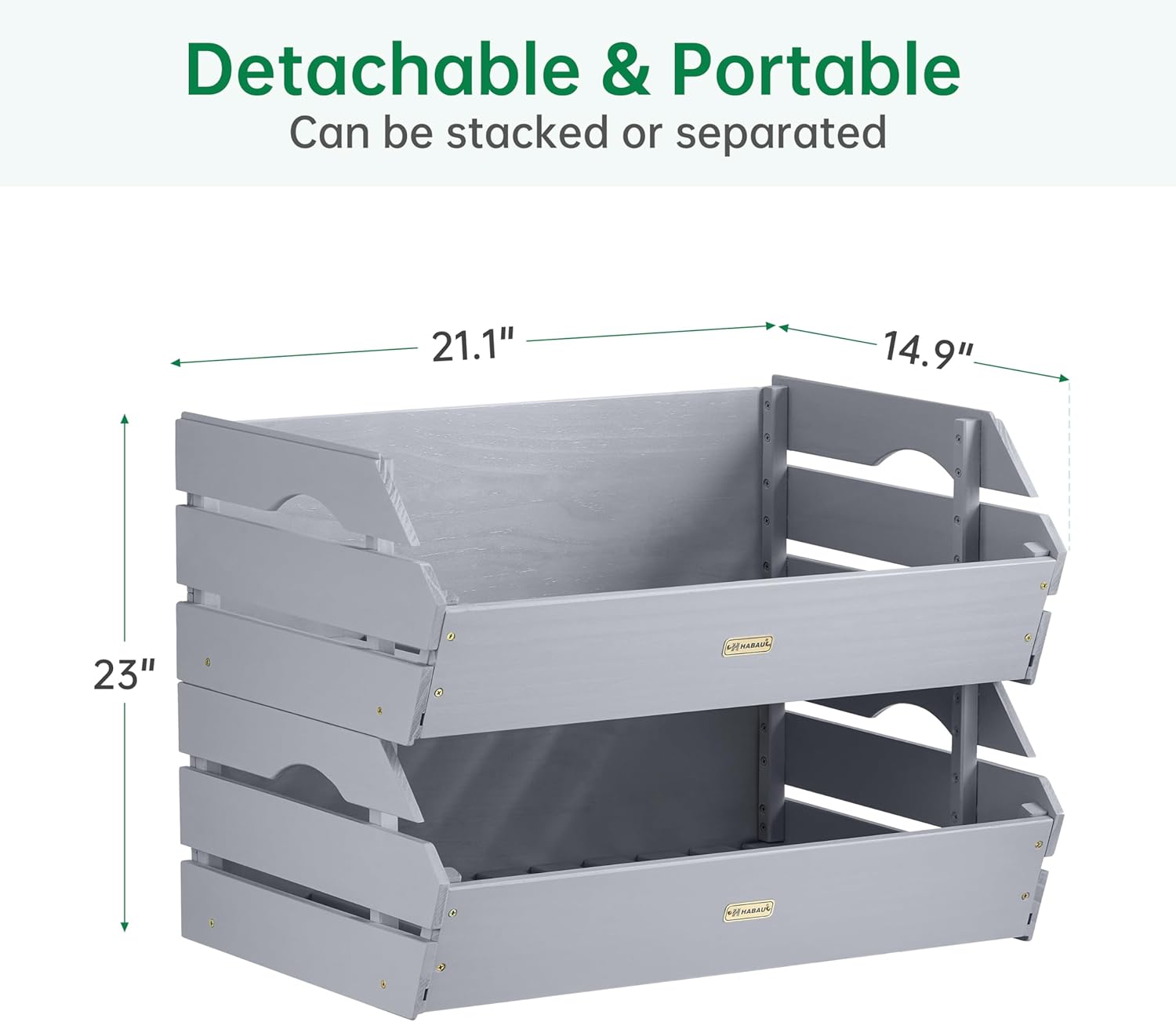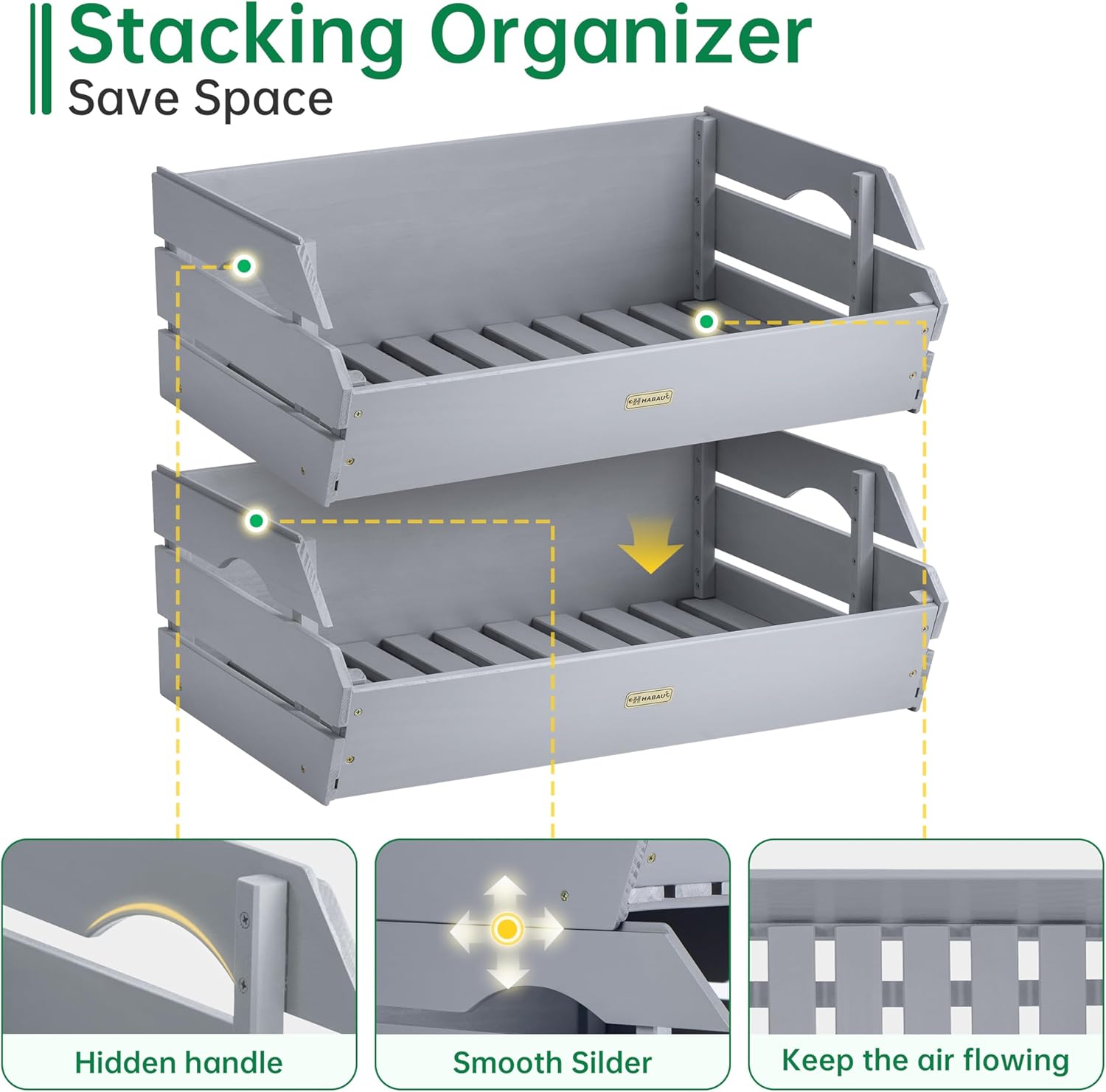 HABAU Wood Potato Onion Storage Bins - Wooden Stackable Produce Basket - Fruit Vegetable Storage for Kitchen Pantry Organization, Set 2 Pieces