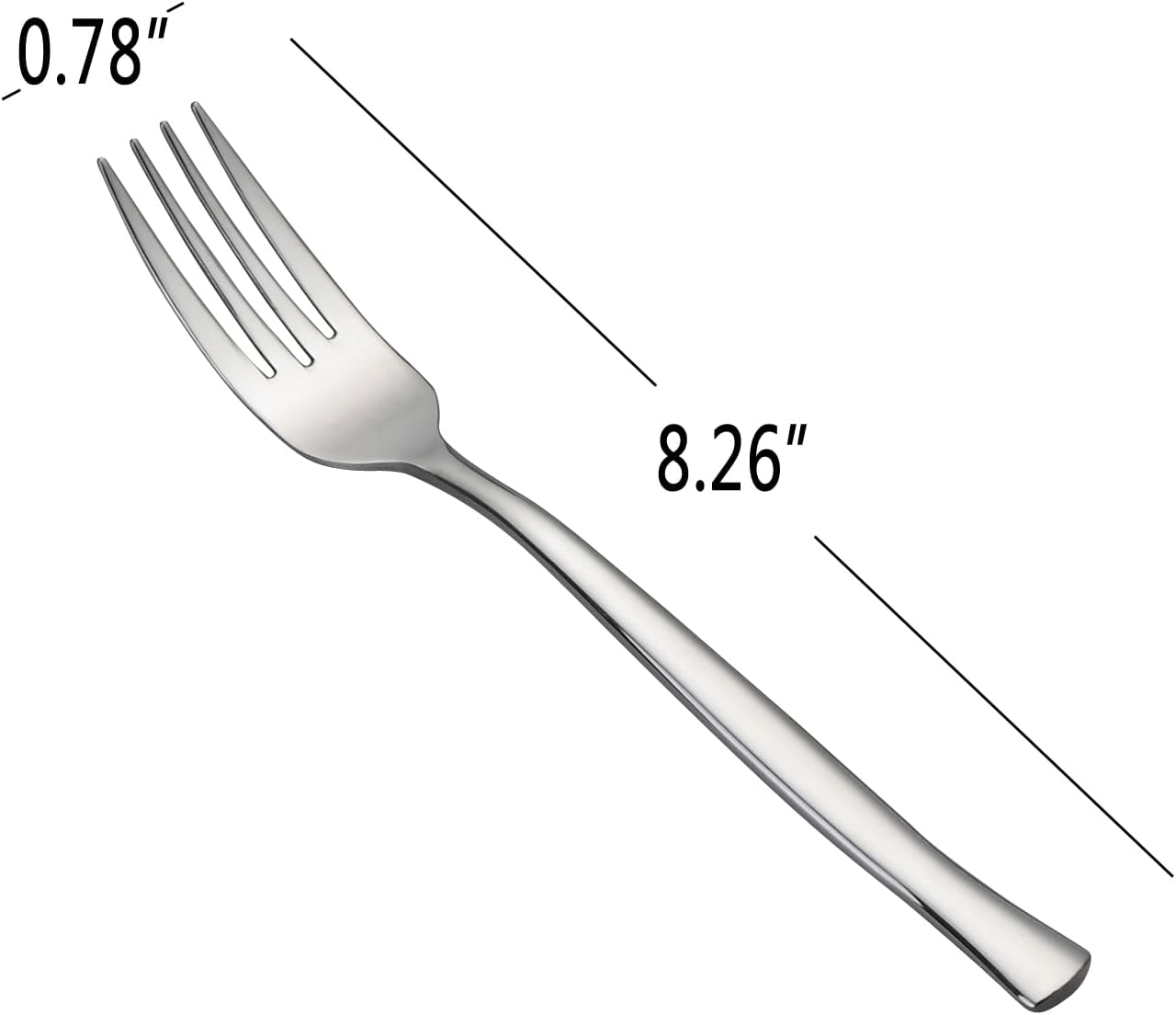 • 【TRUE TO SIZE】Each dinner fork is 8.26" long × 0.78" wide, measured from tip to tail and across its widest point