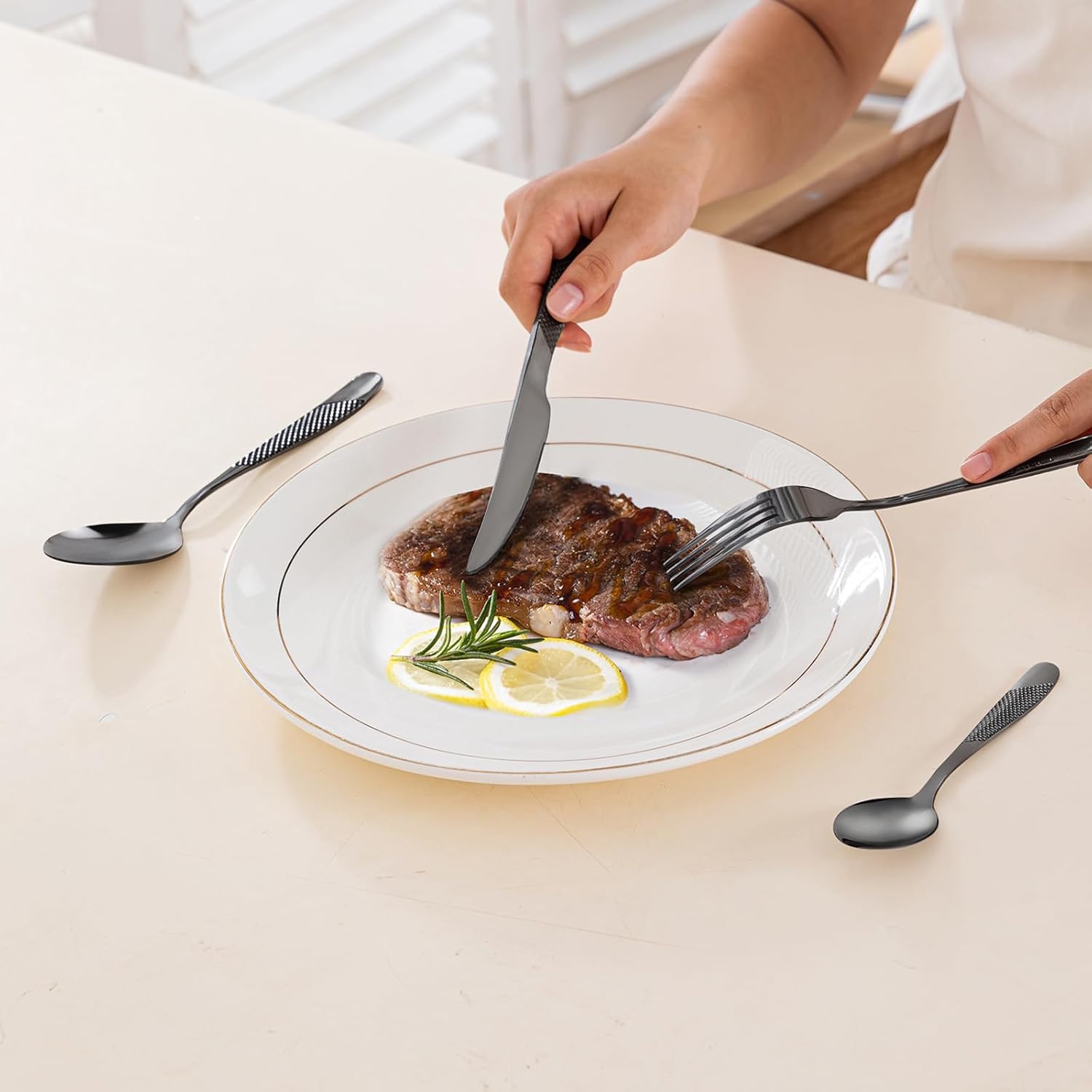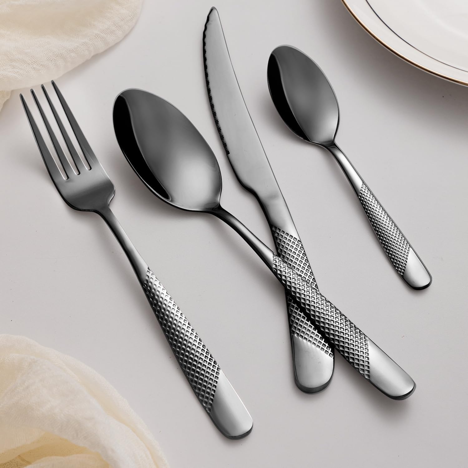 • Premium Stainless Steel:Crafted from high-quality food-grade stainless steel, this silverware set is rust-resistant, corrosion-resistant, and durable for long-term use while maintaining a safe dining experience.