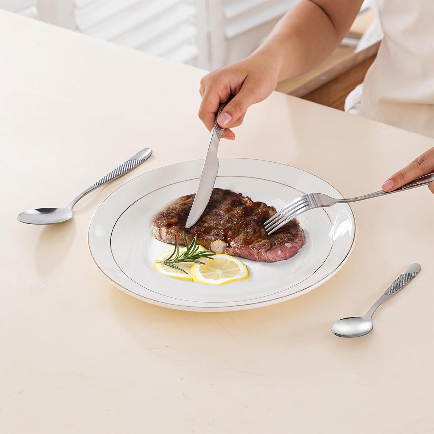 • Versatile & Easy to Clean:Ideal for home, kitchen, restaurants, hotels, parties, weddings, and other occasions. Dishwasher safe and easy to maintain, this flatware set makes cleanup quick and simple.