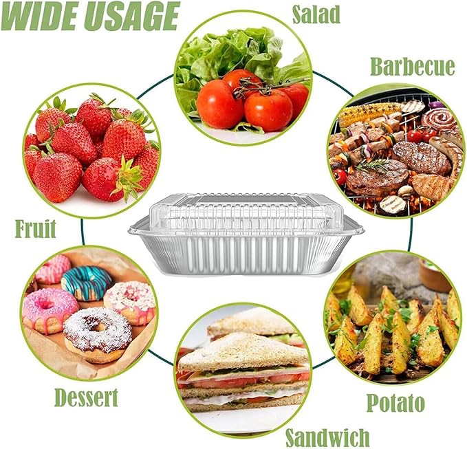 • Clear Lid Tin Foil Pans: Each disposable food container comes with a clear lids, They allow you to easily see the contents while keeping them, Lids lock in warmth while showcasing food, ideal for parties, BBQs, or meal prep.