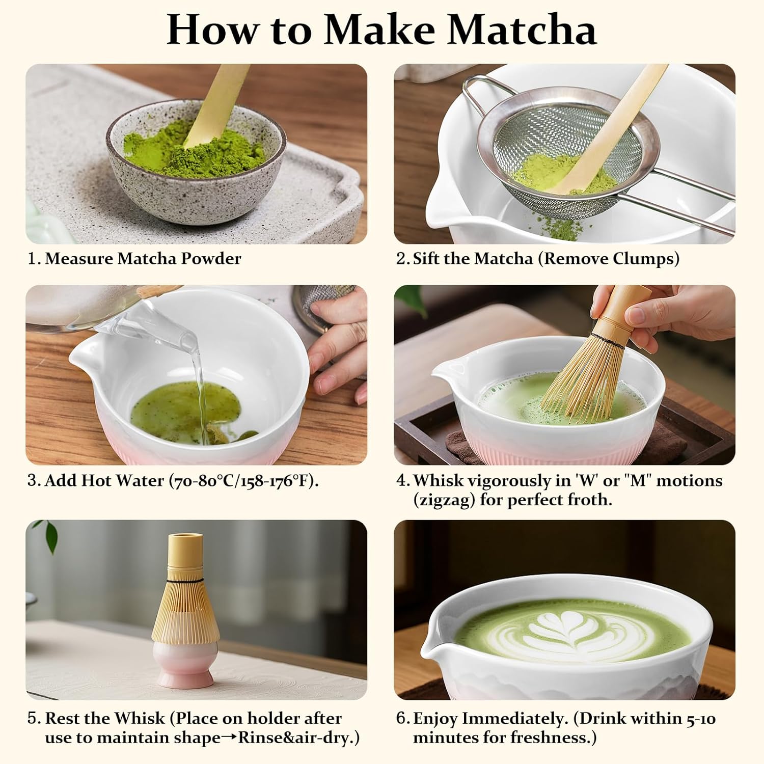 • 【A Gift for Every Occasion】 Available in four beautiful colors: Gradient Pink, Pink, Green, and Blue matcha bowl set. A practical and aesthetically pleasing matcha accessories, ideal and thoughtful gift for matcha enthusiasts, beginners, and anyone who loves Japanese culture.