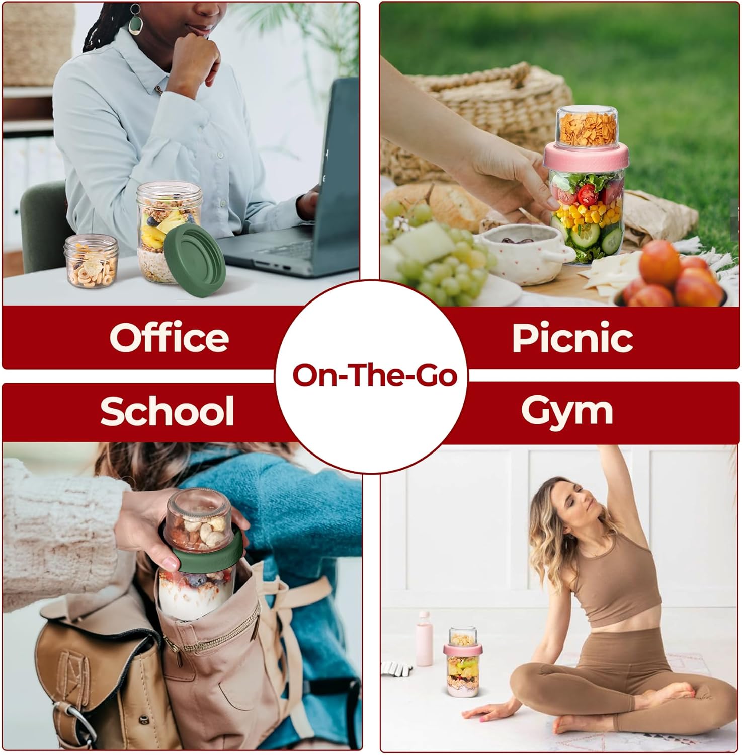 • 【Easy to Carry】 Oats Jars compact size makes them easy to pack into a backpack or meal bag . Perfect for busy professionals, students, and travelers, yogurt containers with lids make it easy to carry your overnight oats to work, school, or anywhere else without worrying about spills or messes.