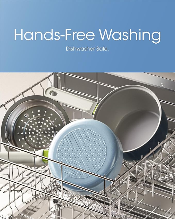 • Easy to Clean & Dishwasher Safe: With ceramic non-stick surface, cleaning this cookware set is a breeze. Simply rinse or place it in the dishwasher for quick clean-up, saving you time and effort in the kitchen.