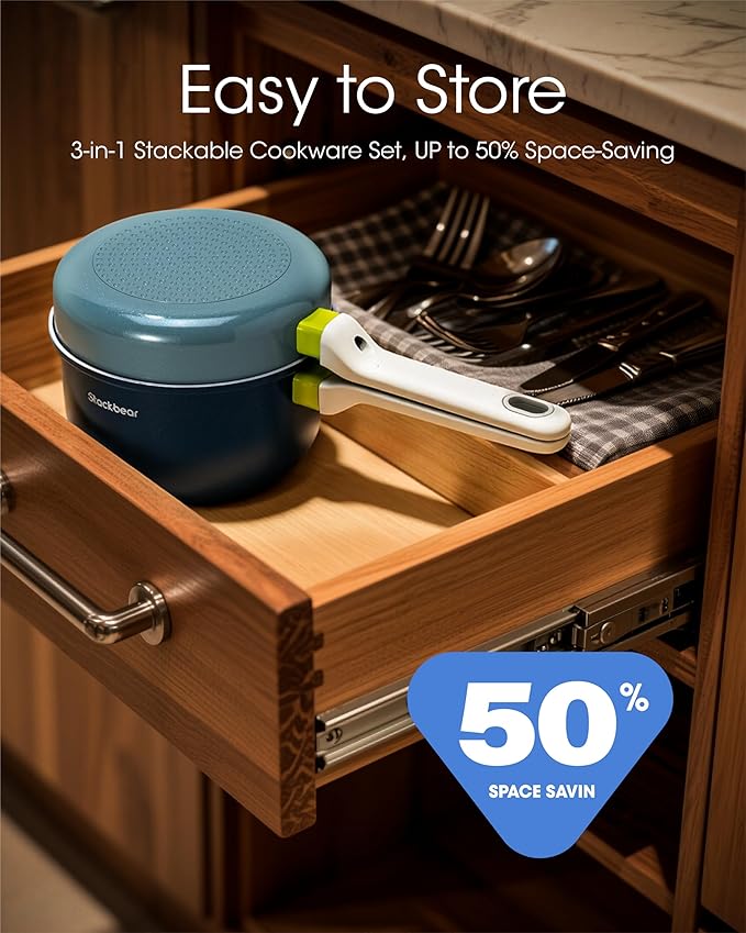 • Space-Saving & Portable: Ideal for small kitchens, camping and travel, this compact cooking pot/pan set is easy to carry and store, making it perfect for any cooking scenario, whether at home or outdoors.
