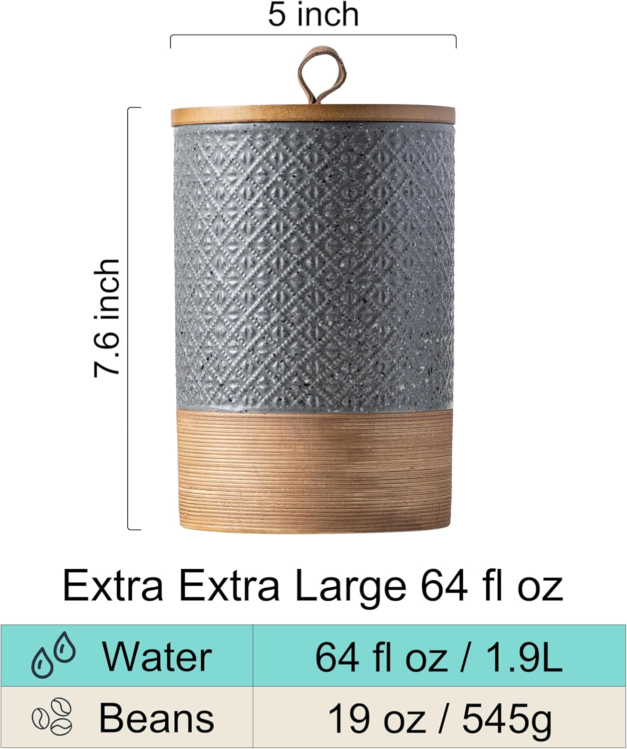 • Heavy-Duty Ceramic Build: This 64oz ceramic coffee canister means business, made from tough, high-quality ceramic with a smooth embossed patterns that’s a snap to clean. Dishwasher-safe for easy maintenance—because big jars need easy care too