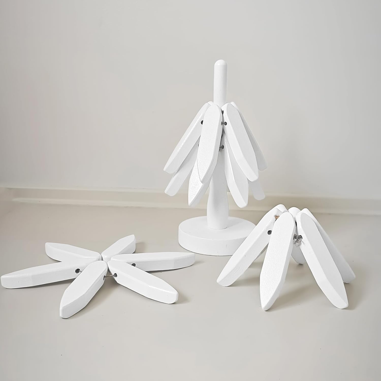 Wooden Trivets for Hot Dishes, Tree Shape Trivet Set, 4 Walnut Wood + 1 Stand stored Like a Christmas Tree,Foldable Kitchen Wooden Trivet,for Hot Dishes、Pot、Bowl、Teapot、Hot Pot Holder (White)