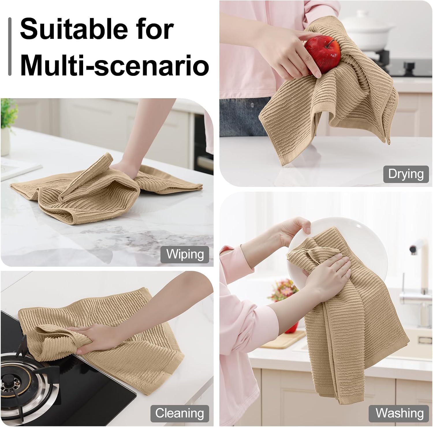 Homaxy Premium Kitchen Towels (18"x 28", 8 Pack), Large 100% Cotton Kitchen Hand Towels, Ultra Absorbent Ribbed Terry Tea Towels Set with Hanging Loop, Khaki