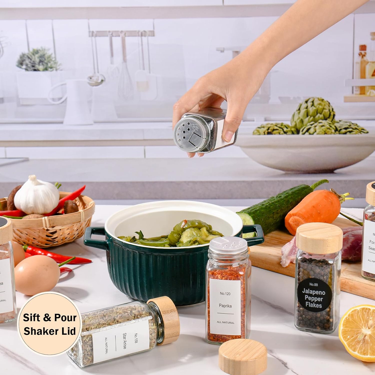 • Food-grade Seasoning Containers: premium thick glass with square shapes of high-transparency visibility, Food-grade glass is healthy for food ingredients, totally BPA free, lead free and shatter-resistance,we have a special 2-in-1 shaker lid for jars with 2 kinds of sprinkle ports,the cute and airtight bamboo lids to keep the spice fresh and dry.