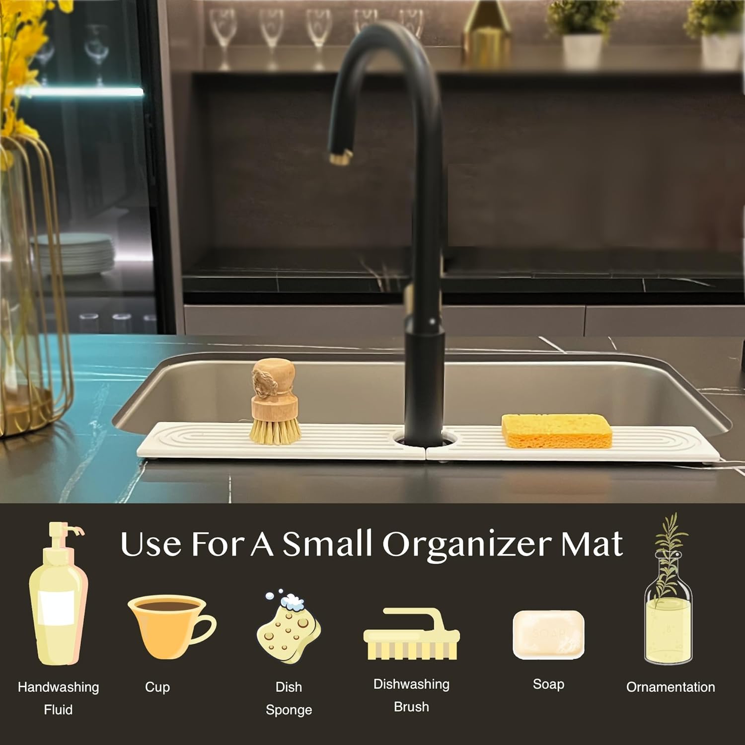• Drying Fast: Our Faucet mat for kitchen sink is crafted from natural diatomacues earth. The diatomite stone's small holes enable amazing water absorption, quickly soaking up splashes and self-drying within minutes. Say goodbye to annoying drips and keep everything dry.