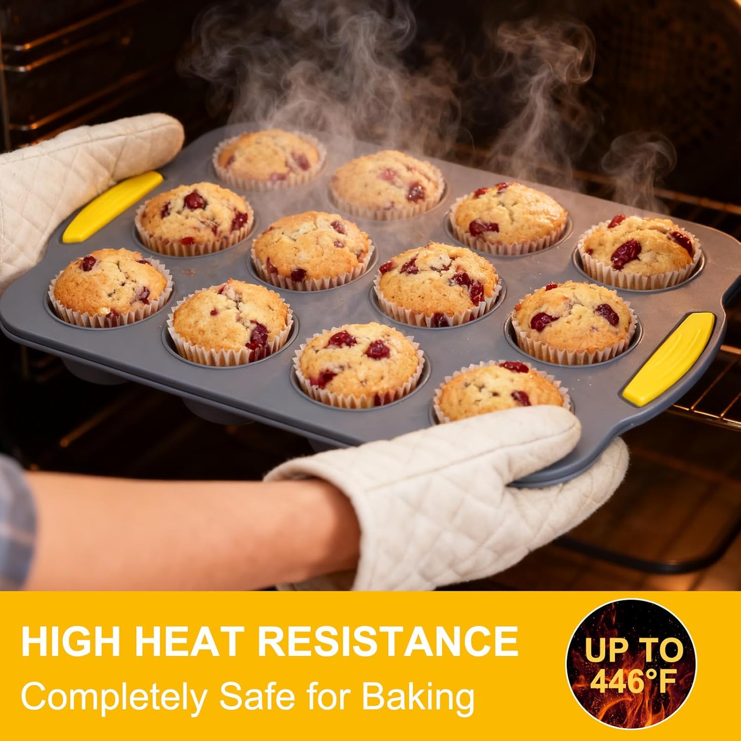 • 【Excellent Baking Results】Designed with 12 deep cavities, the mold helps muffins form full, rounded domes for a professional bakery-style appearance. Its superior heat conductivity ensures even baking for every cupcake, preventing burnt edges or undercooked centers, making it perfectly compatible with all types of home ovens.