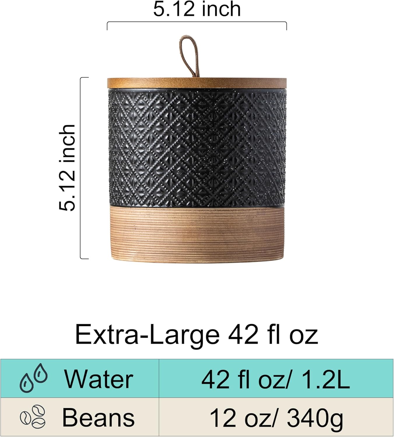 • Ultra-Airtight Wooden Lid: The wooden lid means business for freshness, with a tight gasket locking out air, moisture, and odors to keep beans crisp and grounds flavorful