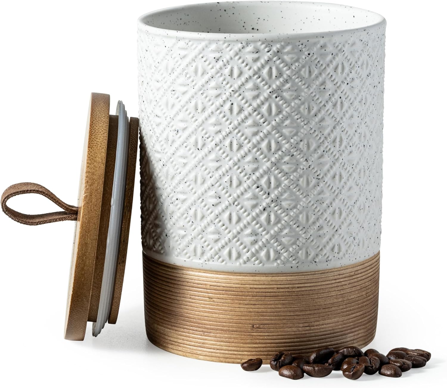 • High-Quality Ceramic Make: This 28oz ceramic coffee canister is crafted from premium ceramic, boasting lovely embossed patterns and easy to clean—dishwasher-safe for lazy cleanup days