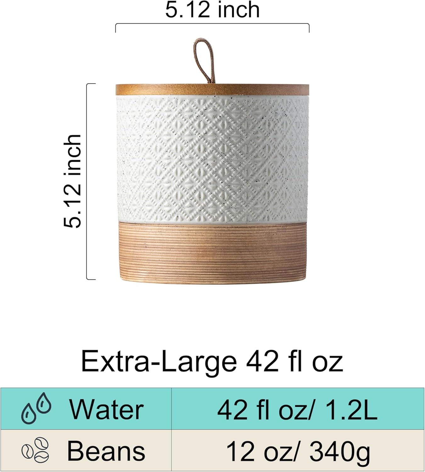 • Ultra-Airtight Wooden Lid: The wooden lid means business for freshness, with a tight gasket locking out air, moisture, and odors to keep beans crisp and grounds flavorful