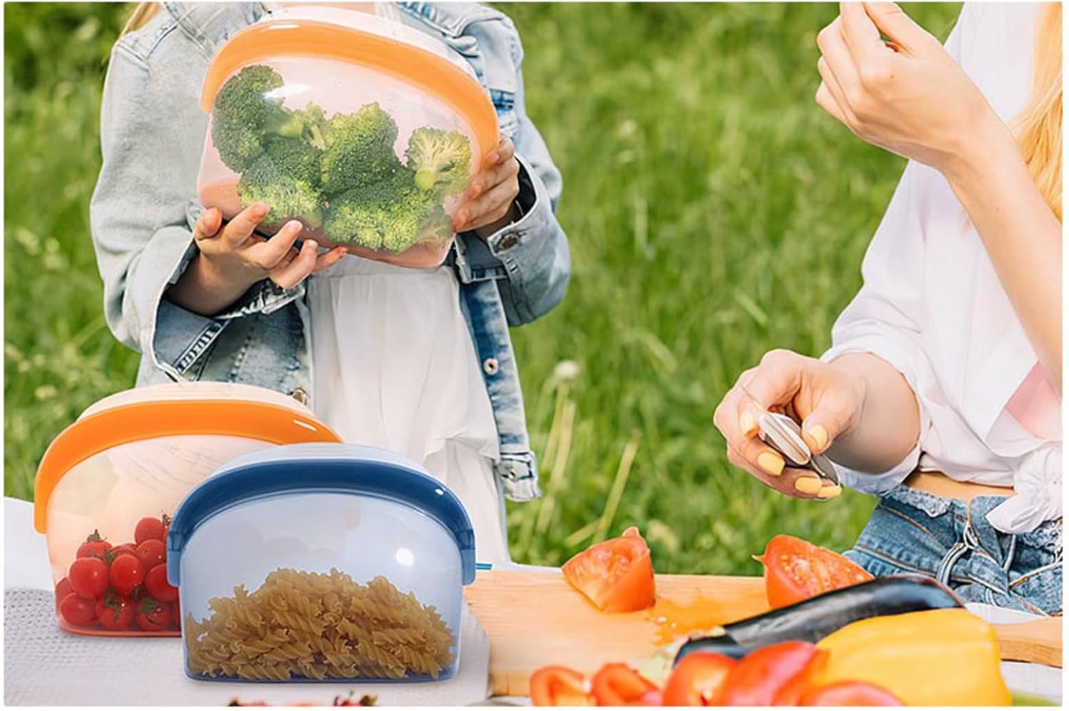 • SUPERIOR KITCHEN-TESTED PERFORMANCE: Crafted from 100% premium food-grade silicone, these bags are built to last. They are BPA Free, odorless, and tasteless. Safely go from freezer to microwave to dishwasher and even sous vide cooker (-40°F to 450°F). A truly reusable and eco-friendly alternative to single-use plastic bags.