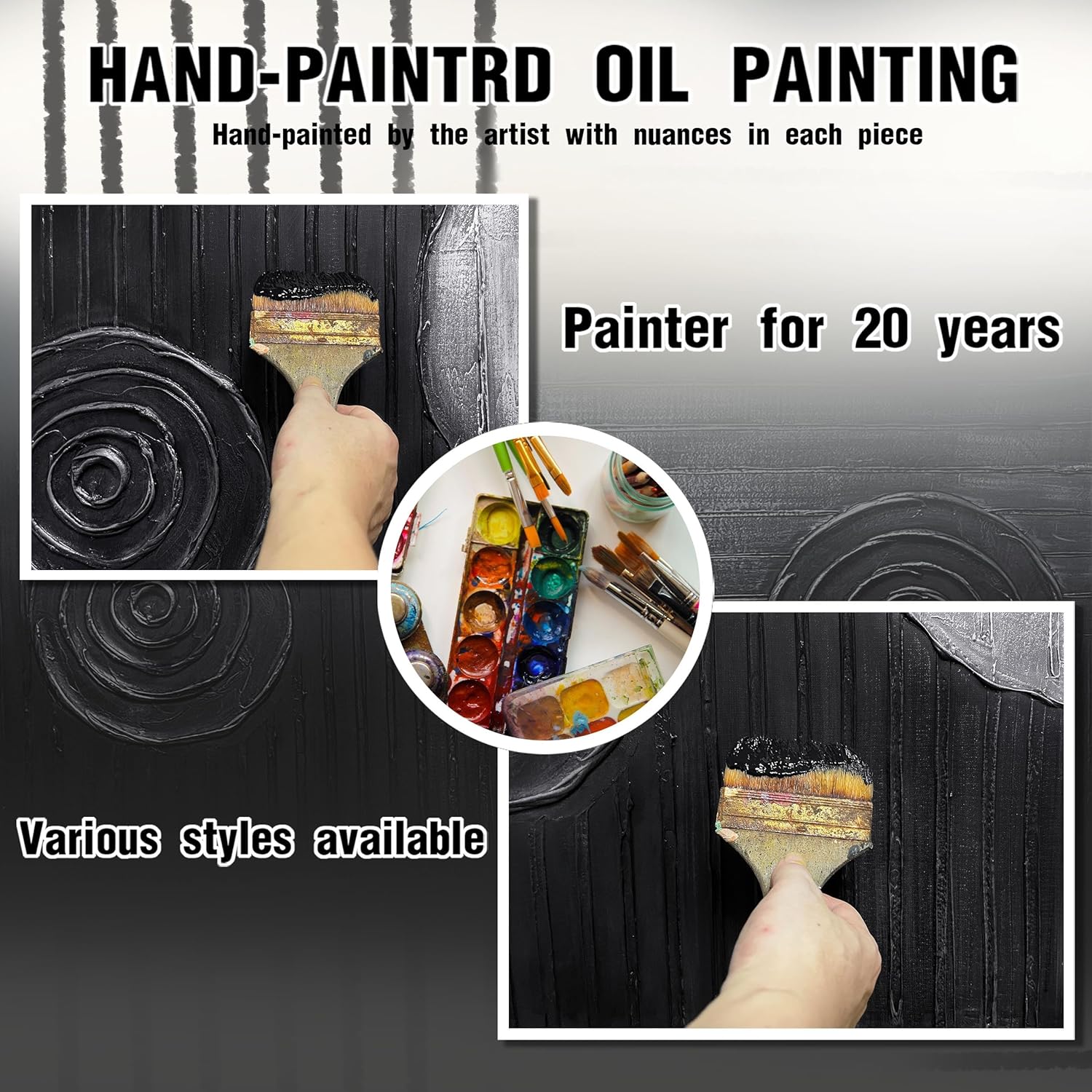 • 【Black Circles Canvas Mural Size】The Size is 24" x 47". Since each painting is hand-painted, the actual painting may differ slightly from the product image. Due to different monitor brands, the actual wall painting color may be slightly different from the product picture.