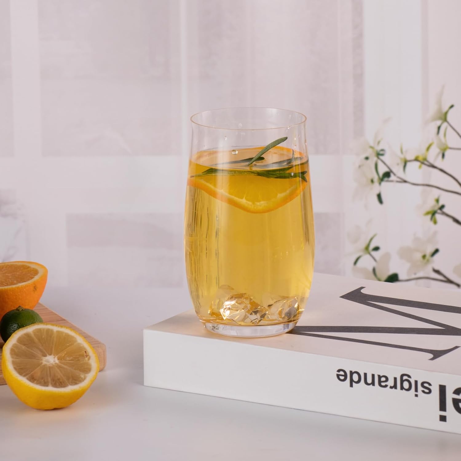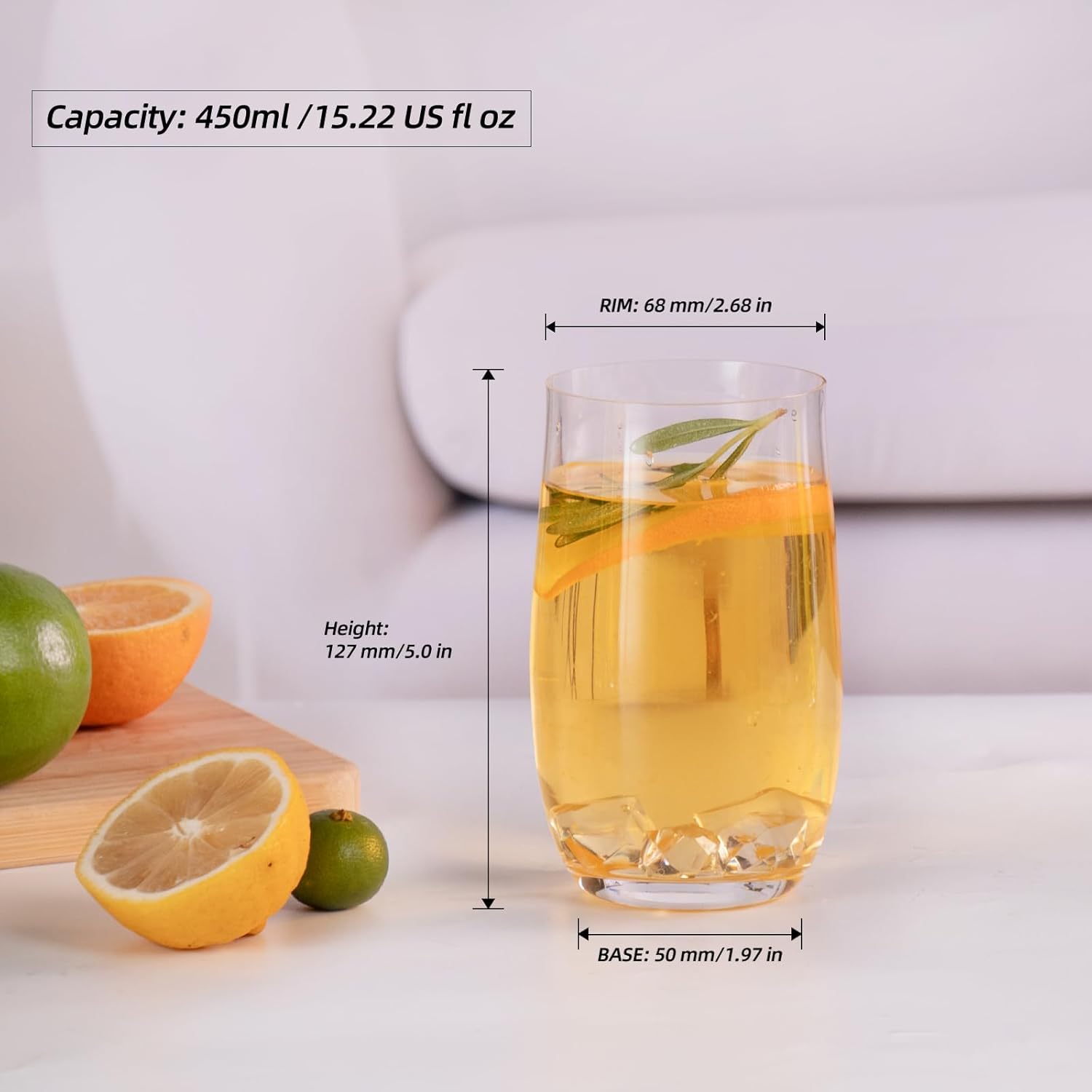 • 【Meticulous Design】The highball glass with a broad and flat base ensures stability and prevents tipping. The wide rim allows smooth sipping, easy addition of ice, fruit slices (e.g., lemon, strawberry), or straws, and effortless stirring. The full-bodied contour fits comfortably in the palm for a secure and pleasant grip.