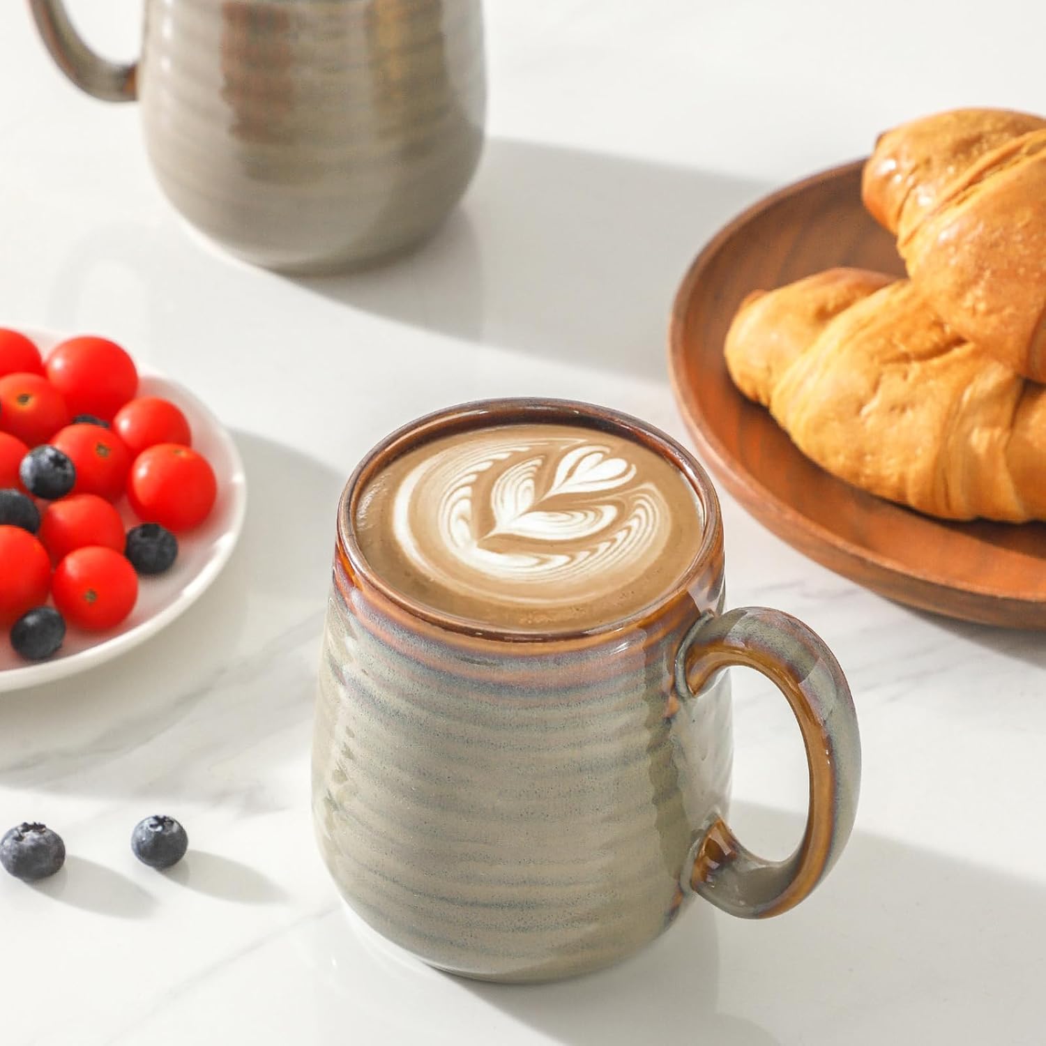 MEKY Coffee Mugs, 15oz Ceramic Coffee Cups with Comfortable Handle for Latte, Milk, Cappuccino, Cocoa, Tea Cups for Office and Home, Dishwasher and Microwave Safe, Set for 4, Brown