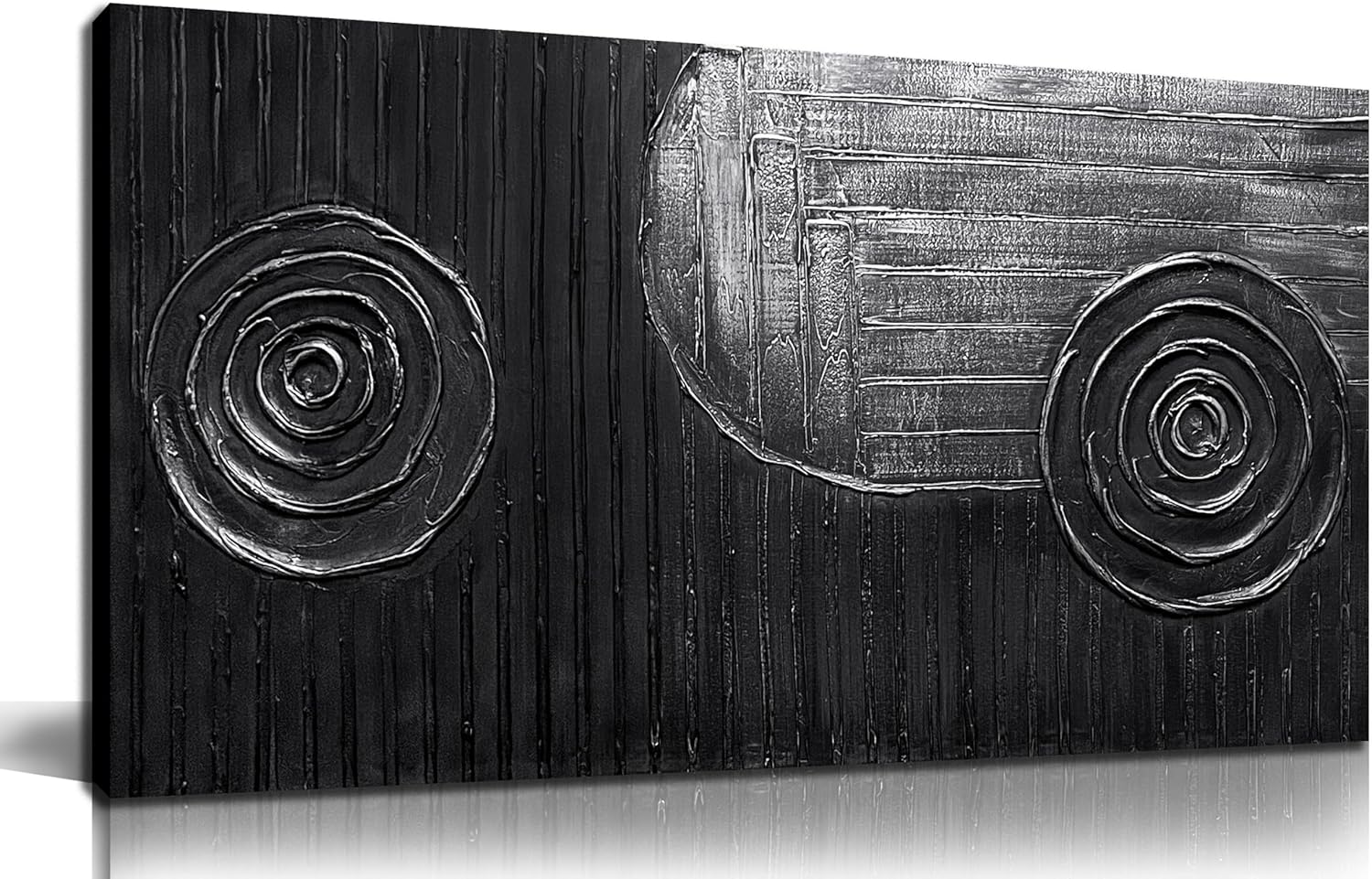 Abstract Oil Painting Wall Art Bedroom Black and Silver Canvas Wall Art for Living Room Circles Pictures Wall Decor for Kitchen Size 20 x 40 Inch