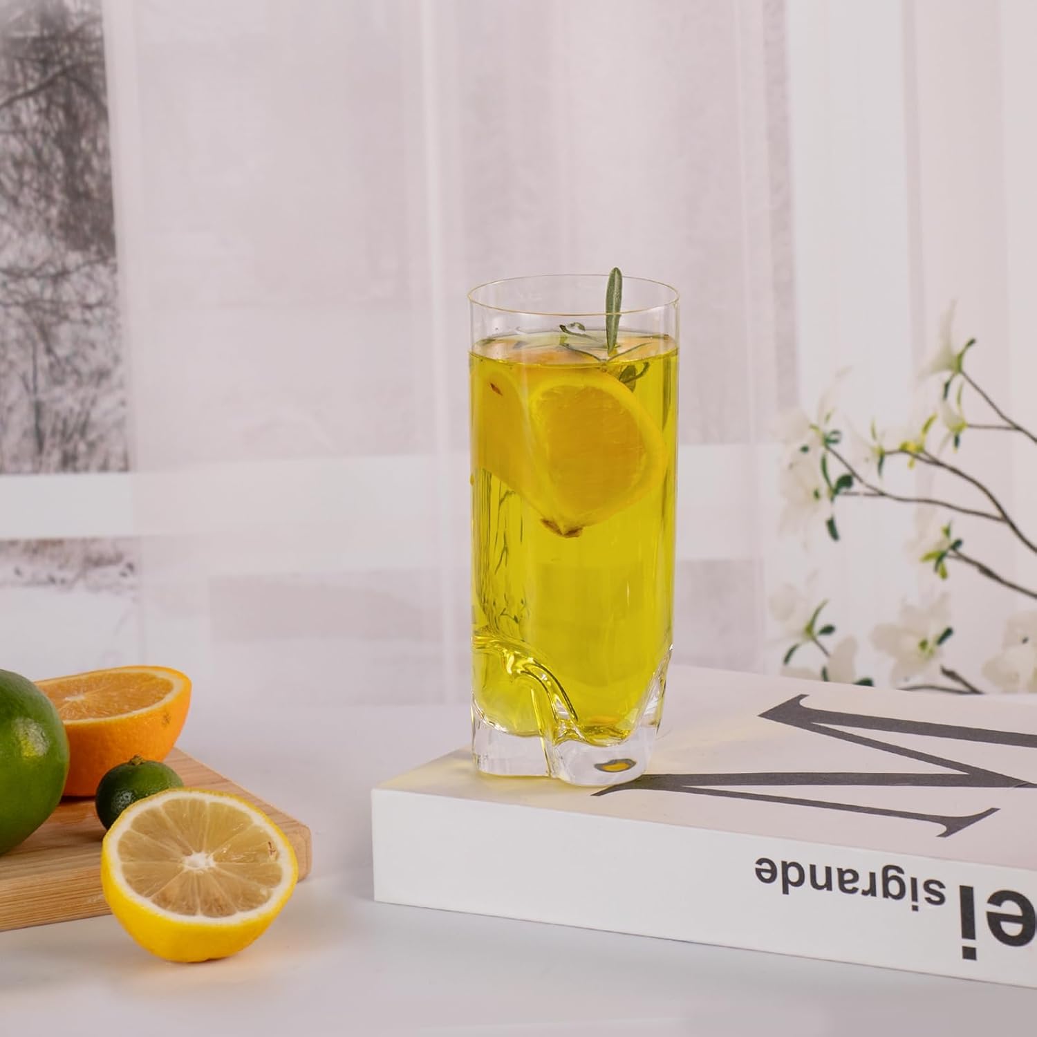 • 【Meticulous Design】The highball glass with a broad and flat base ensures stability and prevents tipping. The wide rim allows smooth sipping, easy addition of ice, fruit slices (e.g., lemon, strawberry), or straws, and effortless stirring. The full-bodied contour fits comfortably in the palm for a secure and pleasant grip.