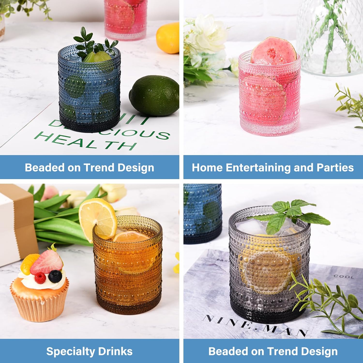 • 【Versatile Glassware】This Vintage Textured Beaded Drinking Glasses can be used to enjoy a variety of different drinks, including juice, water, cocktails, beer, whisky, soda, beverages, and more. Not only drinking glasses, they are also excellent display items on the shelves!